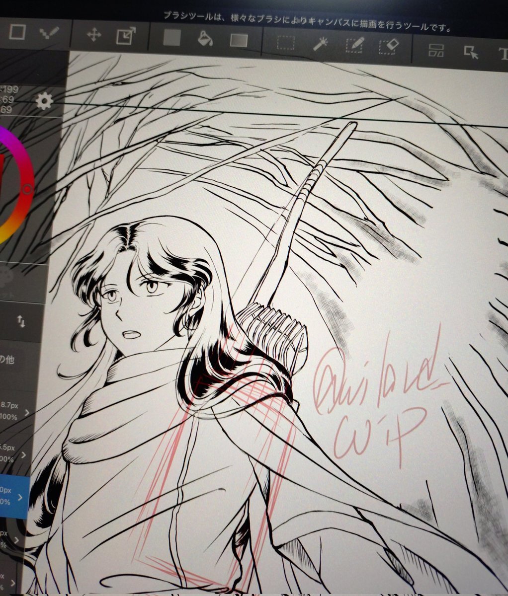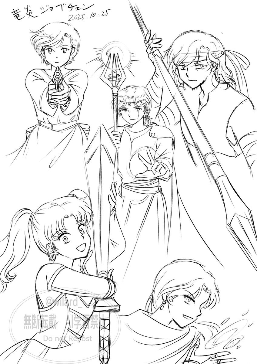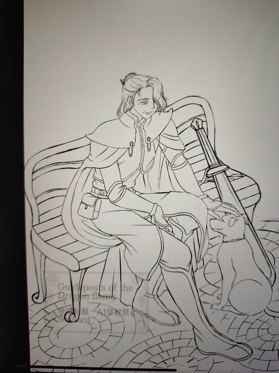 お誕生日絵線画できた〜 いつ完成するかわからないので線画だけでも載せとく😅 スマホ撮りで画像悪し マキちゃんは左利きなので剣は左側に置いてます 右手も使えますが剣は左 #一次創作漫画 #竜炎の道標 #oc pic.x.com/LQloqVq5qI