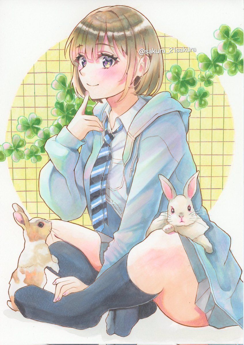 『うさぎさんに囲まれて』🐰🍀 細部に至るまで好きな物だけ詰め込みました! ピンク中心の暖色系をよく使う癖があるので、たまには寒色系も使おうかなーくらいの感じで配色を決めました #秋の創作クラスタフォロー祭り #刺さる人に届け一次創作祭り #一次創作祭り秋の2025秋の陣 #copic pic.x.com/TooZI3DRaj