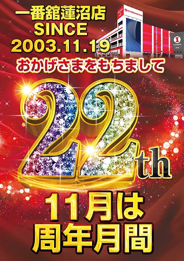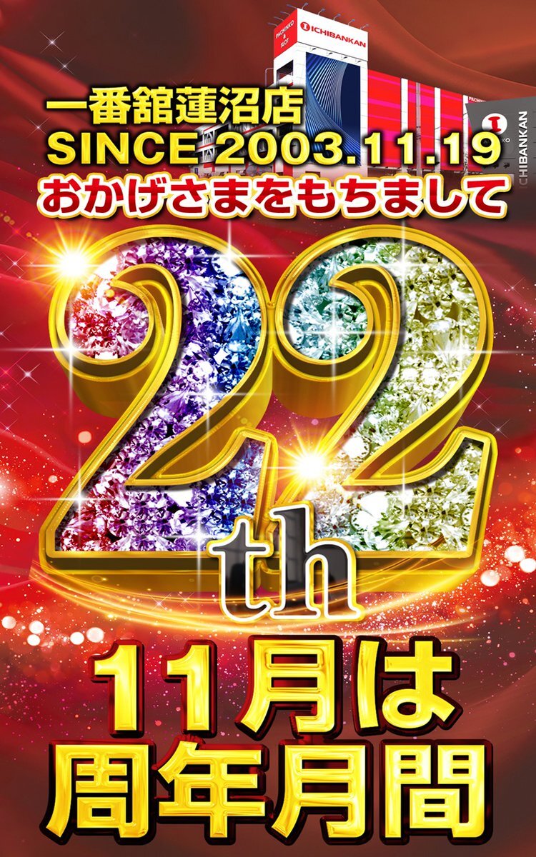 \\🎊11月は周年月間🎊// *.°💎三連休も一番舘💎*.° ▷▷連日1⃣0⃣時開店!! ぜひご来店お待ちしております❤️‍🔥 #一番舘 #一番館 #埼玉 #東大宮 #三連休 #周年月間 #パチンコ #スロット #スマパチ #スマスロ pic.x.com/VWdkBeqyQe