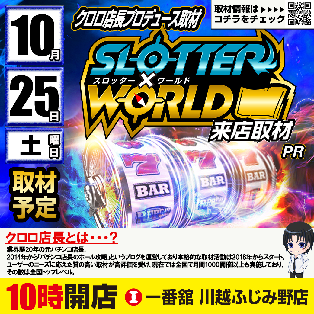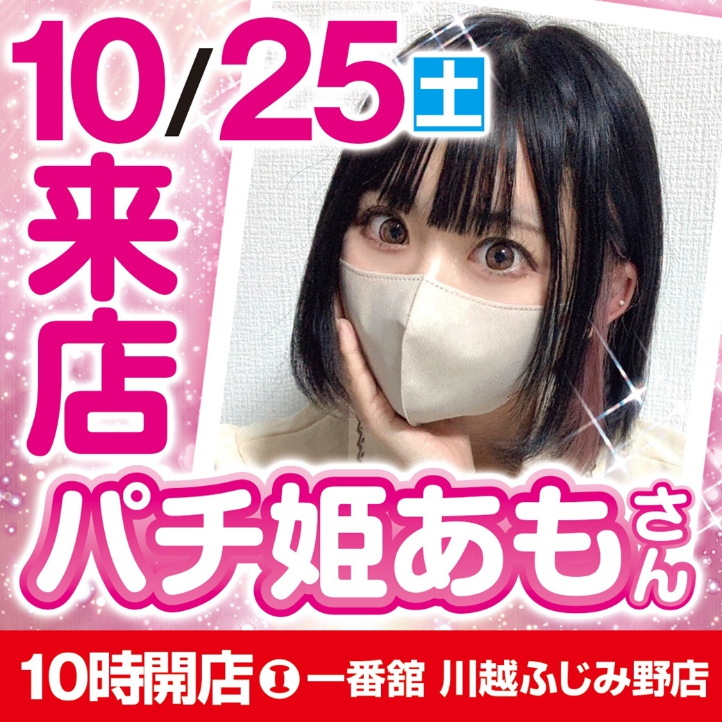 ☆10月25日(土)☆ 10時フルオープン💕 #スロッターワールド 来店取材 #パチ姫あも さん来店 お楽しみ下さいませ(^^ゞ #一番舘 #一番館 #埼玉 #川越 pic.x.com/k91PHpSQCO