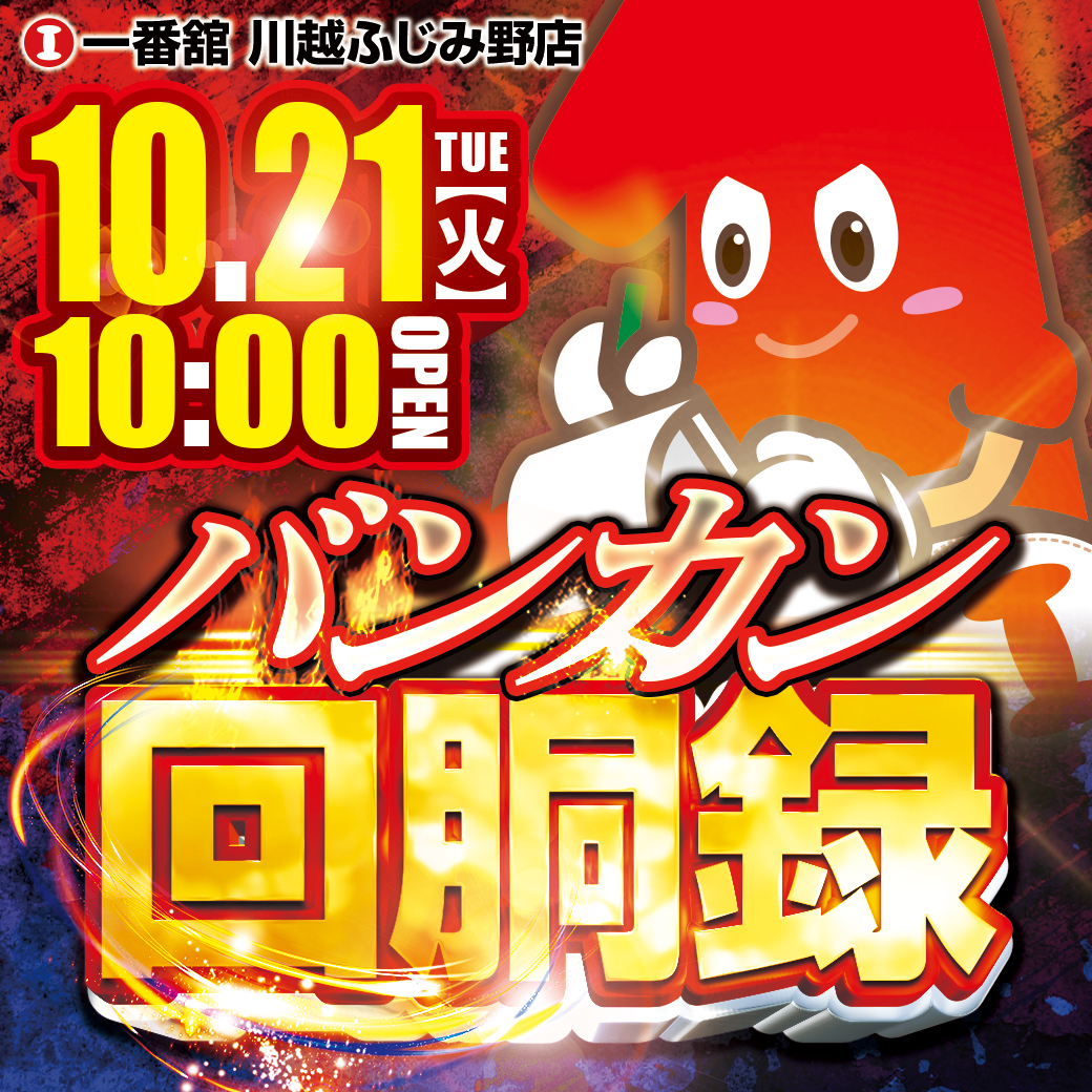 10月21日(火) ☆10時開店☆ #バンカン回胴録 #アイドル取材 抽選時間は9:30より開始です!! #埼玉 #川越 #パチンコ #パチスロ #一番舘 #一番館 pic.x.com/uTZwDFGJe9