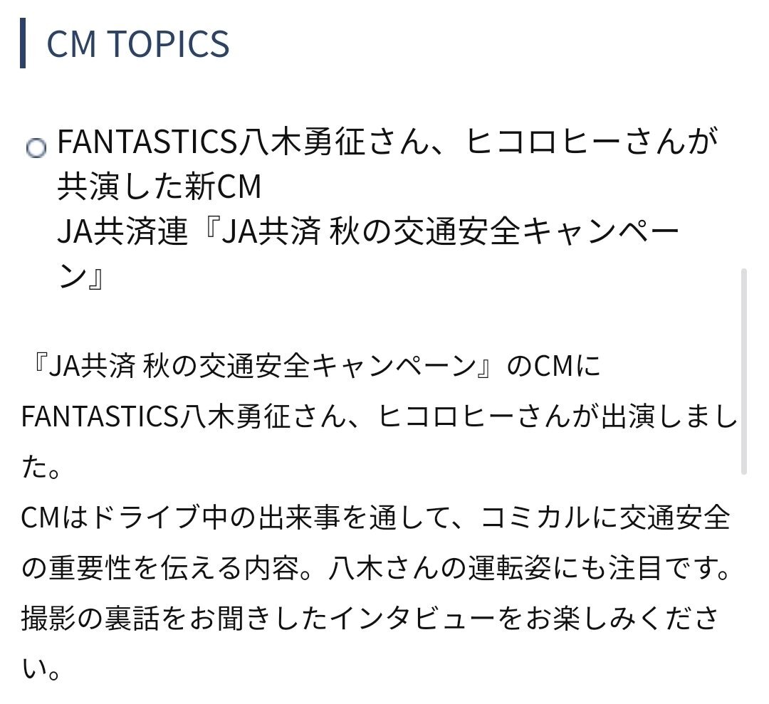 先週から 毎週録画設定して全力待機しておりました 引き続き全力でお待ち申し上げます ◆#八木勇征 #ヒコロヒー #FANTASTICS #JA共済 #一緒に守ろう交通安全 x.com/cm_index/statu…