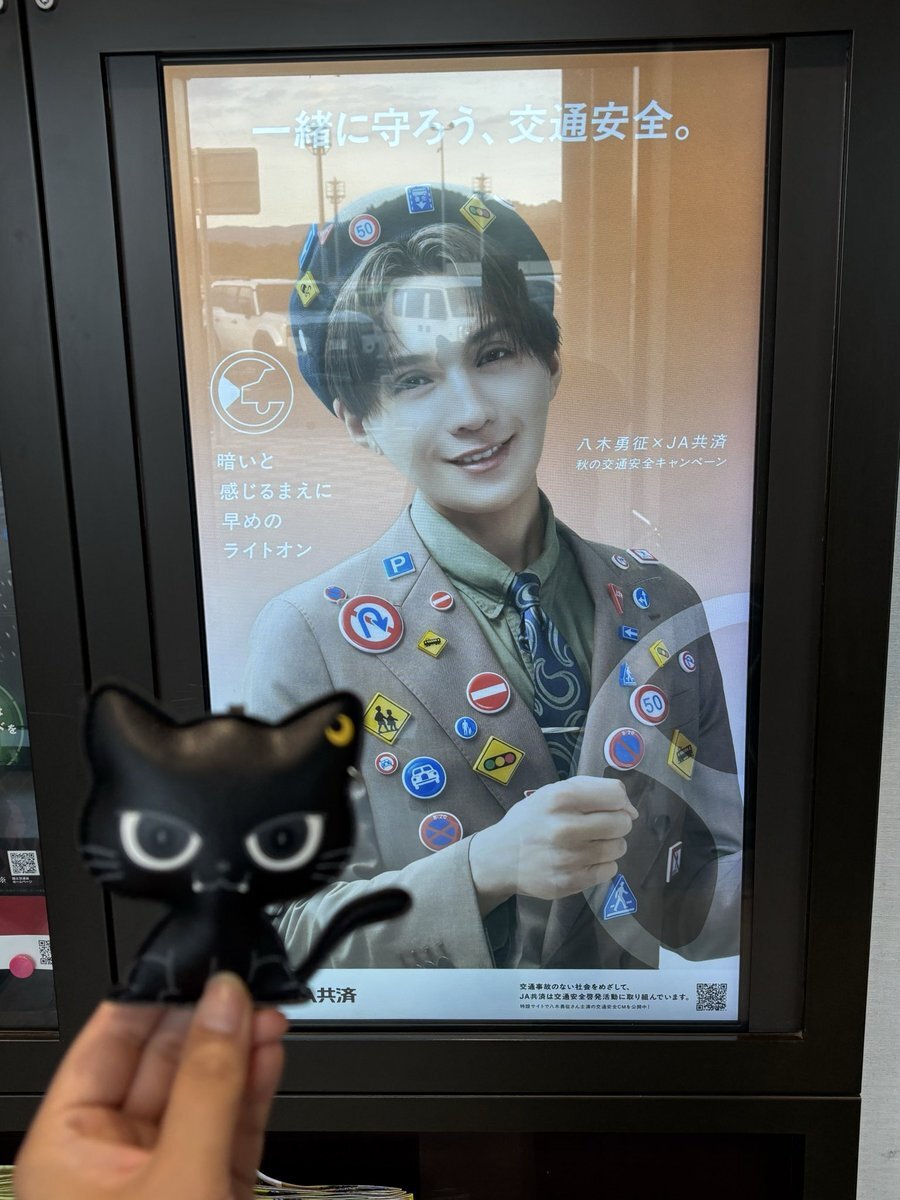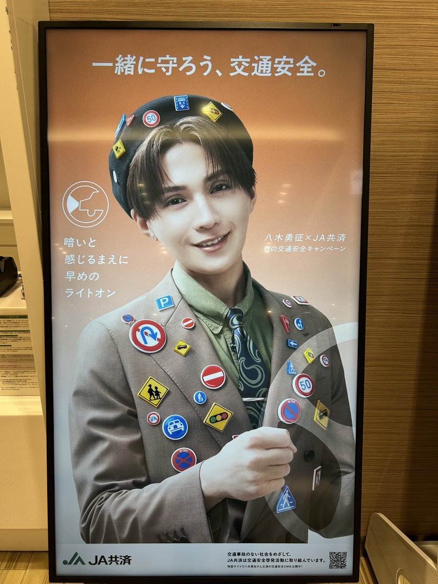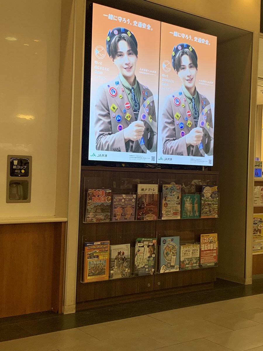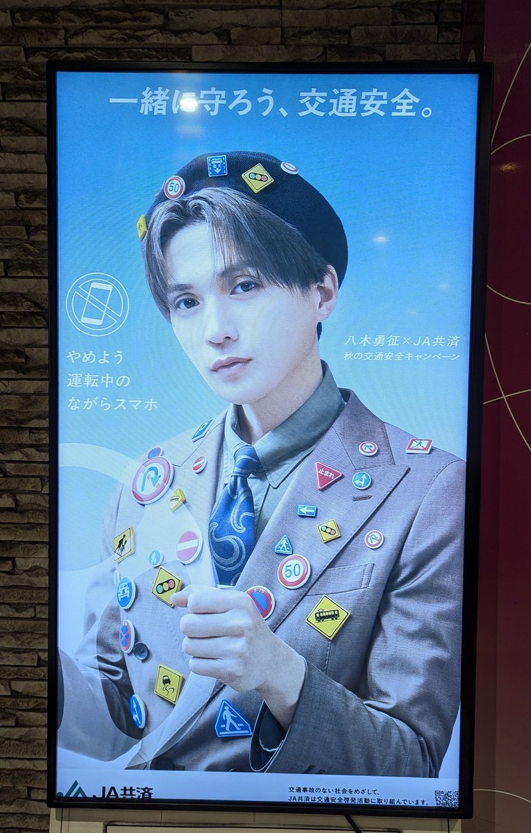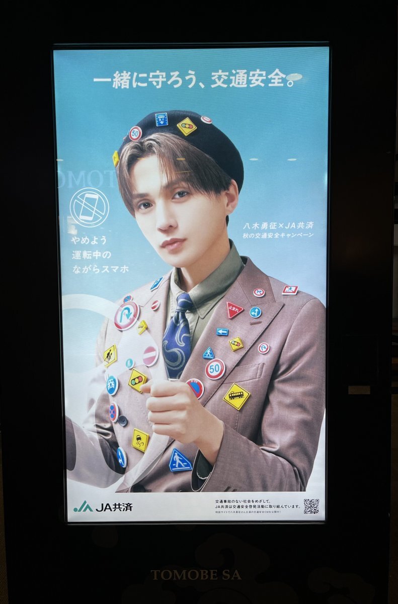 最後は古賀SA(上り)でほんとのほんとに私のサイネージ納め なんだかんだ期間中高速使う機会が多くてたくさん会えました🚗 ゆせさんににっこり笑って「一緒に守ろう、交通安全😊」なんて言われたらそりゃ気をつけて運転しますわ☺️ これからも交通安全👍✨ #一緒に守ろう交通安全 #八木勇征 #JA共済 pic.x.com/SKGH0exvF6