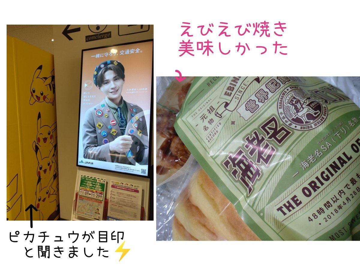 先日子の用事のついでに遠回りだけどSA寄ってもらいました🥹 旦那と子が食べている時にサイネージ捕獲してきました!ポストで見掛けたピカチュウを目指して😂 久々のSAだったから美味しいもの食べてばっかだった😋えびえび焼き初めてだったけど美味しかったな🦐 #八木勇征 #一緒に守ろう交通安全 pic.x.com/CSAH75jANh