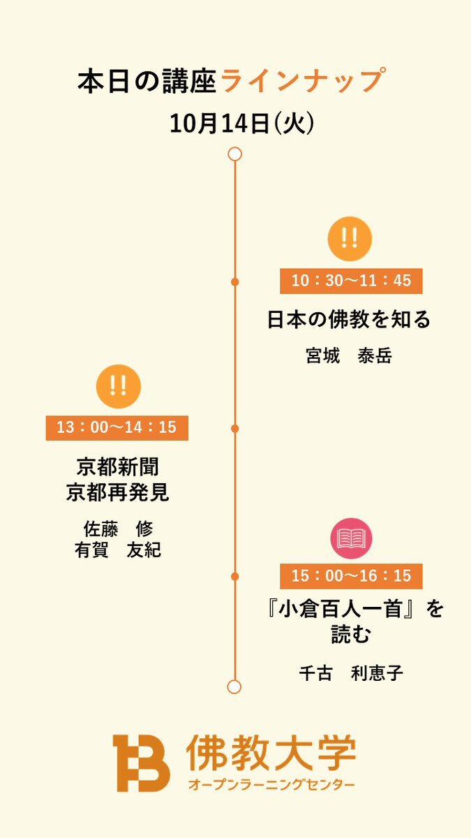 \本日の講座ラインナップ/ ①#一般社団法人文化継承機構 提携講座 伝統産業の知恵「#伝統産業 のルーツは京都から」 ②やさしい初等医学入門Ⅷ「#健康 とはなにか? #病気 とは何か?」 講座一覧▶x.gd/7IAyZ #京都 #佛教大学 #OLC #公開講座 #生涯学習 pic.x.com/KmaZaF7F98