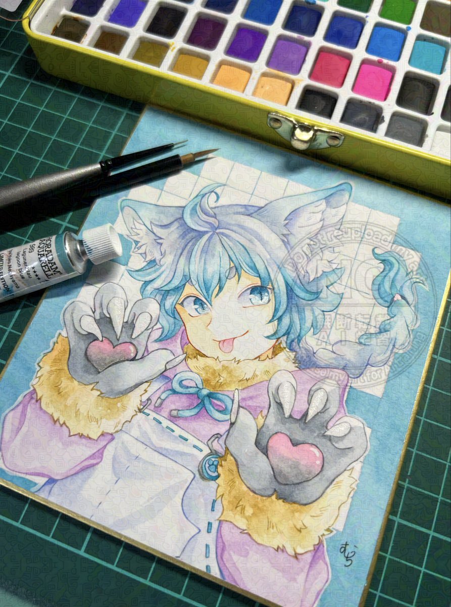 ウォーターフォード豆色紙に シュミンケ・ホルベイン・グラビー透明水彩で着彩 シュミンケのラグーンブルーをたくさん使いたかったよ…!という絵です🩵💙 こちらの作品は一色商店さんに納品します #一色商店常設展 pic.x.com/OJb6PoL1ES x.com/muttikutiku/st…