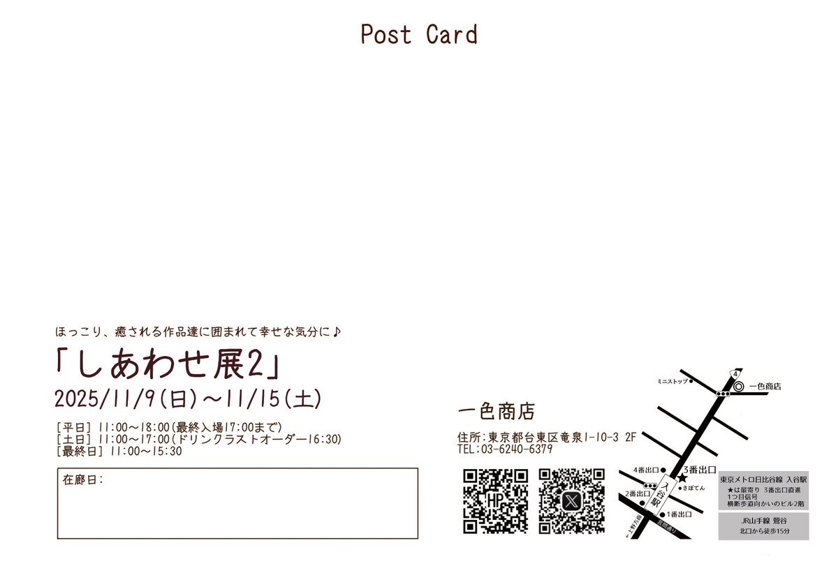 🍁東京入谷 一色商店さん@isshikishoten  では 開店中は 🍂【#一色商店常設展】 2025/11/9~11/15 グループ展 🍁「#しあわせ展2」 11/9~12/21 🍂【ごーなな展ななろく     season2】 #ごーなな展2 ヒラシマ マイ参加です よろしくお願いいたします 11/3はお休みです pic.x.com/3ZDGf0OUXc