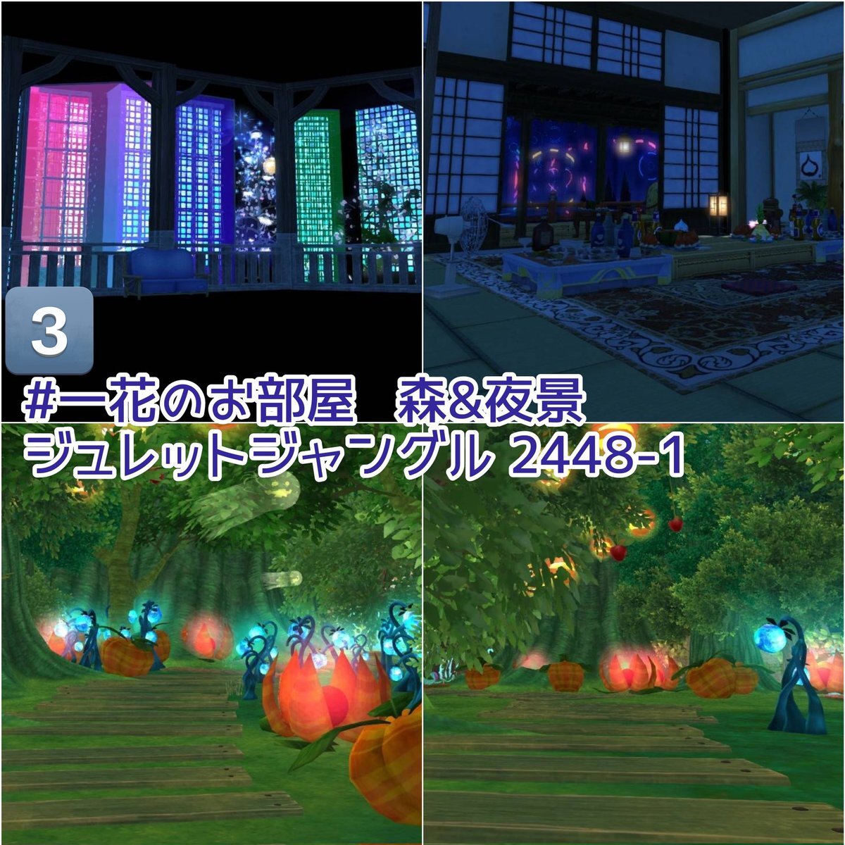 ハウジングまとめ 前に作ったおうちで、いつでもあいてます。 ④だけ作りかけですが白黒背景代わりにどうぞ スタジオタグは #一花のお部屋 ①② 本棚&BAR風 オルフェアフラワー6740-5 ③Mサイズの森&高層ビル群夜景 ジュレットジャングル2448-1 ④白&黒背景&格子柄&カラフル背景 アズラン農村4472-1 pic.x.com/POnIe9UAKX