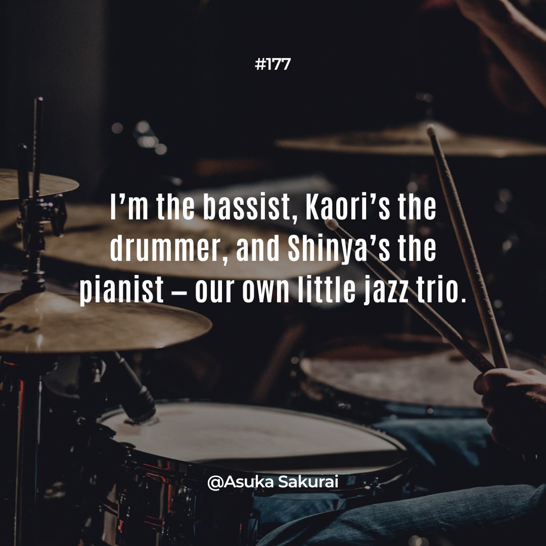 "I’m the bassist, Kaori’s the drummer, and Shinya’s the pianist — our own little jazz trio." 私と真也と香織さんはジャズトリオみたいなもん。 A one-line diary, paired with a font that speaks. #OneLineDiary #WattpadUser #一言英語日記 #quoteoftheday pic.x.com/0t1pVXyjfM