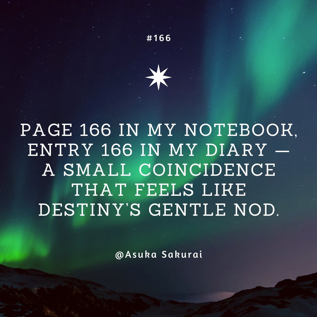 "Page 166 in my notebook, entry 166 in my diary — a small coincidence that feels like destiny’s gentle nod." 英訳ノートの166ページとこの166作目が同じ日に達成しただけ A one-line diary, paired with a font that speaks. #OneLineDiary #WattpadUser #一言英語日記 #quoteoftheday pic.x.com/hsdTlBjCbo