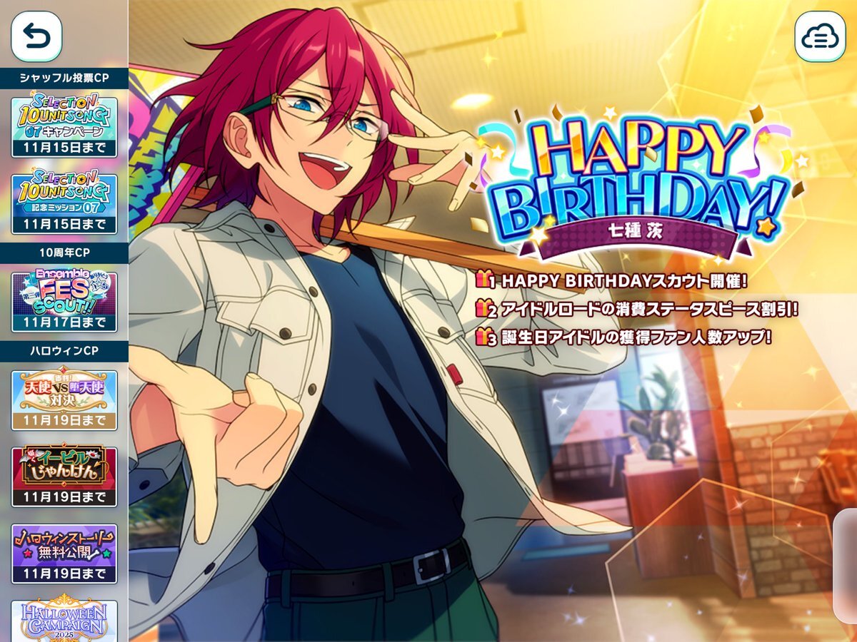 【誕生日のお知らせ】 本日、11月14日は COSMIC PRODUCTION所属 ユニット『Eden』 🎉七種 茨の誕生日!!🎉 🎊🎂HAPPY BIRTHDAY!!🎂🎊 #あんスタ #七種茨誕生祭2025