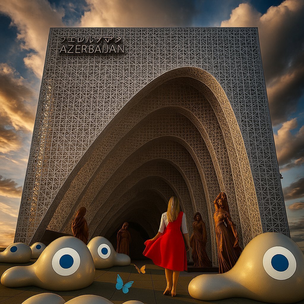 #アゼルバイジャンパビリオン #七人の美女 アゼルバイジャンの有名な詩「七人の美女」に基づいた7人の女性像と7つの象徴的なアーチに圧倒されました。360スクリーンと没入体験のテーマも見逃せなかった…!(ELEVEN & Bellprat Partner設計)