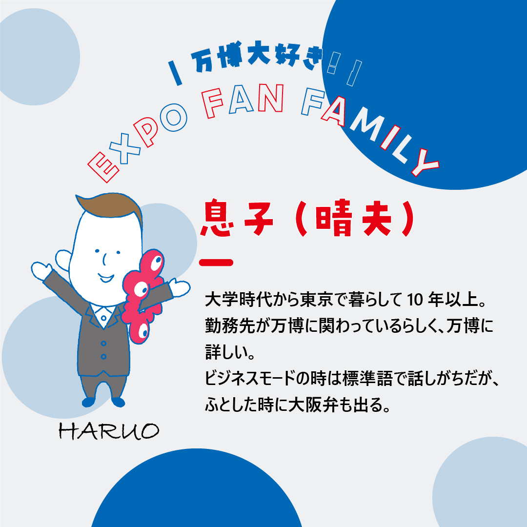 <再投稿> \万博大好きファミリー/ 晴夫👔 「ミャクミャクの目は6つって知ってた?」 expo2025.or.jp/lp/superearlyb… #万博大好きファミリー ※画像内の表記が誤っておりました。訂正の上お詫びいたします。 お気付きいただいた皆さま、ありがとうございました。 pic.x.com/Dmr5bhPcuC