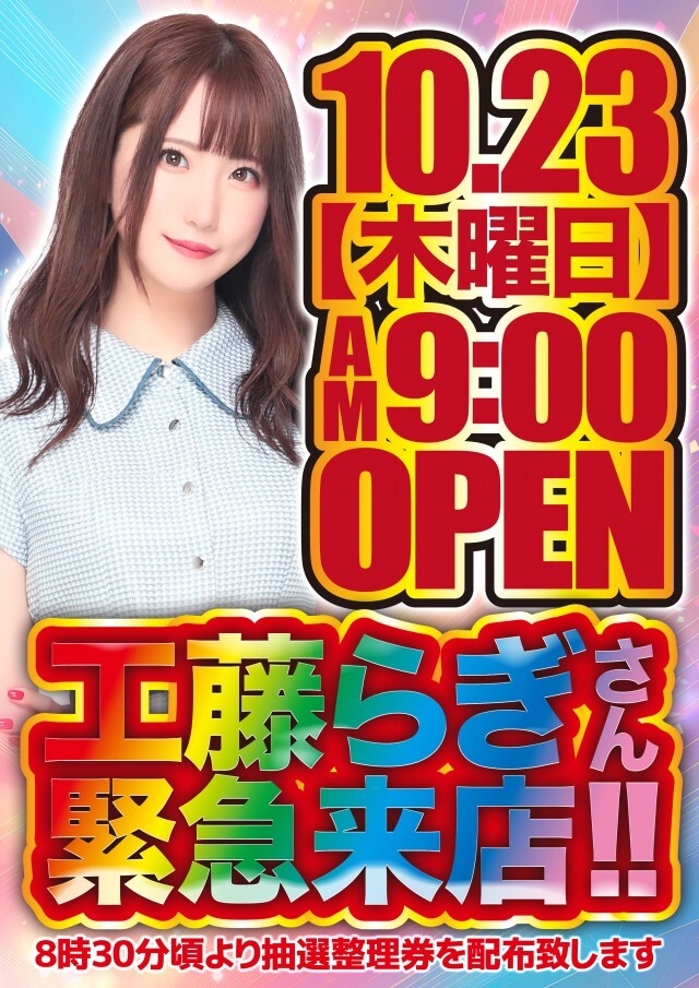 本日もありがとうございました!! 今日も🎉#万枚突破🎉 ついに明日は待ちに待った23日! やってくるぞ! #工藤らぎ さん!! 楽しみで仕方ないぜ∑(°∀°)コレハヨゥ!! 明日朝8時30分から抽選開始!! ウェルカムモードのアンコールセブン!楽しみに皆さんをお待ちしております!! pic.x.com/TtA3YnRPJz