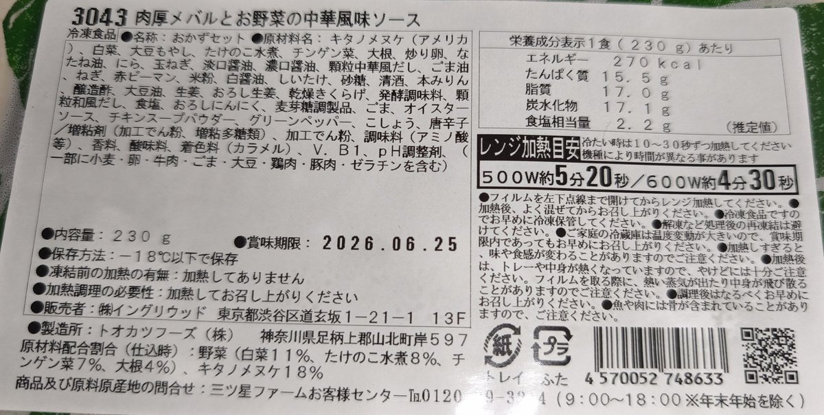 今日は宣言通り三ツ星ファームの 「肉厚メバルとお野菜の中華風味ソース」 を食べます! 今日は帰りちょっと遅くなったから余計に助かる😆 初めてメバル食べたけど、身がふわふわで以外と美味しい😋 楽したい人は宅配弁当おすすめだよ!😊 #三ツ星ファーム pic.x.com/ohUT6jOJ0p