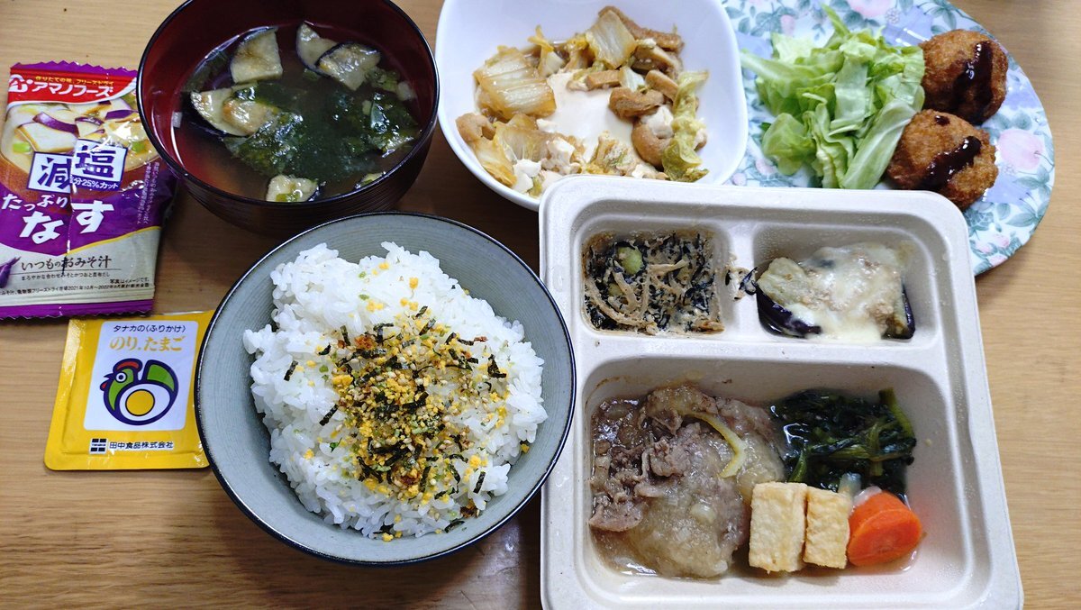 #今日の晩御飯 🍚ふりかけ(のりたまご)ご飯 🥢減塩なす味噌汁 🥬茹でキャベツ 🍖メンチカツ2 #三ツ星ファーム 🍱たっぷり野菜の牛下ろし #晩御飯 #晩飯 #今日の晩飯 #家飯 #自宅飯 #おうちごはん #ばんごはん #晩ご飯 #晩ごはん #ばんめし #晩めし #おかん飯 #お袋飯 #おふくろ飯 pic.x.com/rxcKTVPvvh