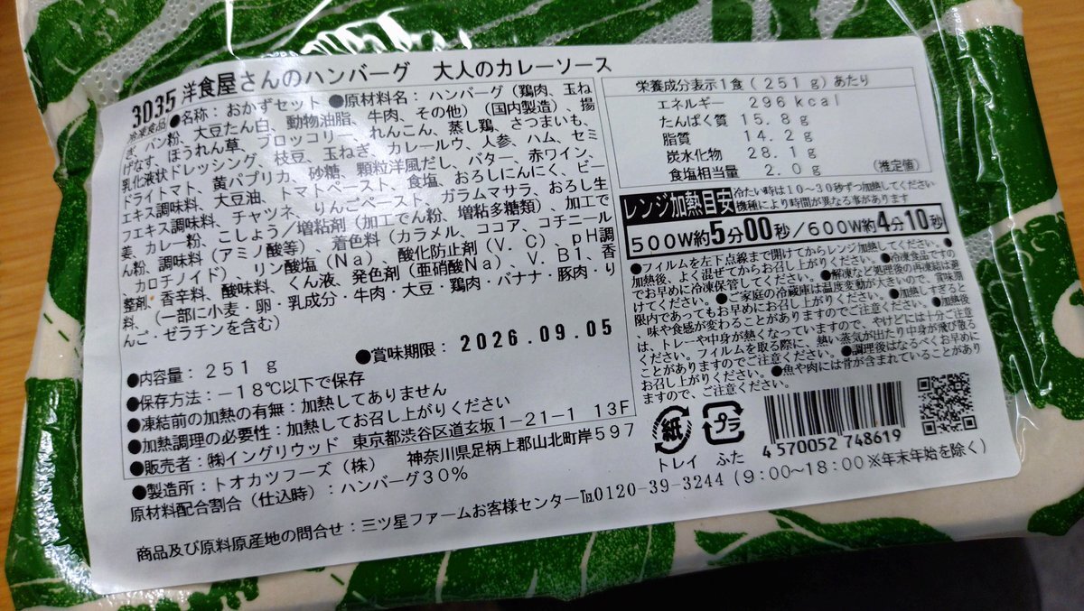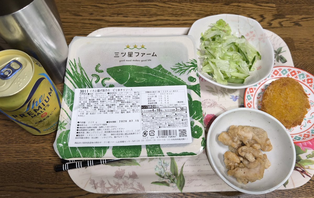 #三ツ星ファーム 早速お世話になってるんだけど(ご飯の準備中に脱落した)、もう少しつわり期に優しいメニューを選ばせて欲しかった…初回セット、スパイシーなのとか香り強いのが多い…
