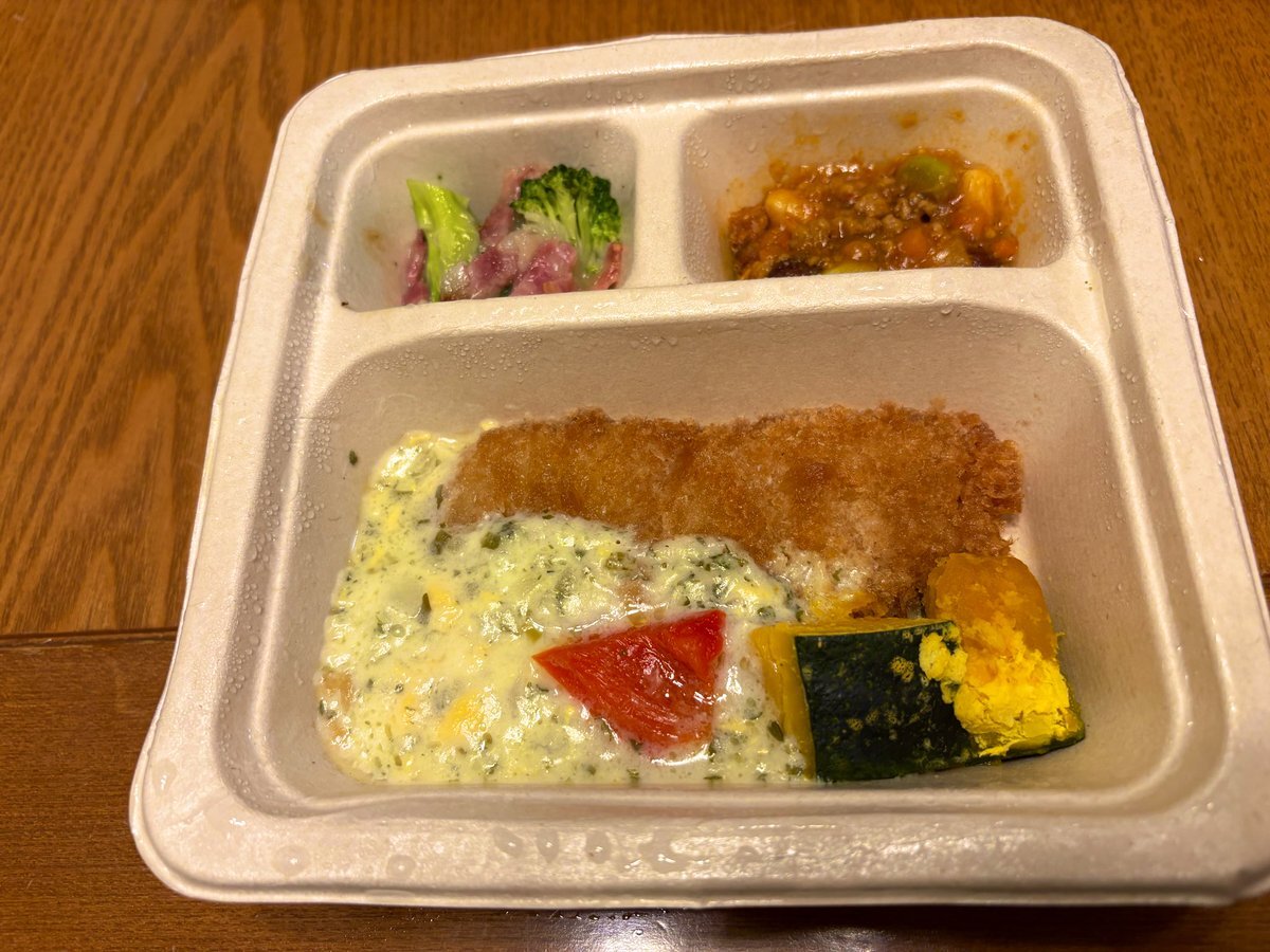 広告どおりのイメージ、だいたい。左の黒酢あんかけはかなり旨い😋右のパン粉焼きは、チーズソースかかっている部分の鱈が凍ったままでちょっと残念😢🥕は苦手だけど、甘くて美味しかった✨ #三ツ星ファーム #宅食 pic.x.com/90CNDrhCUd x.com/kyoko_hayase/s…