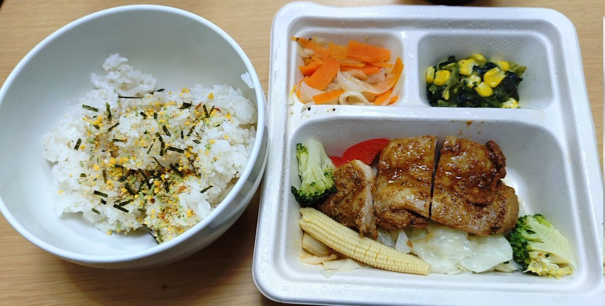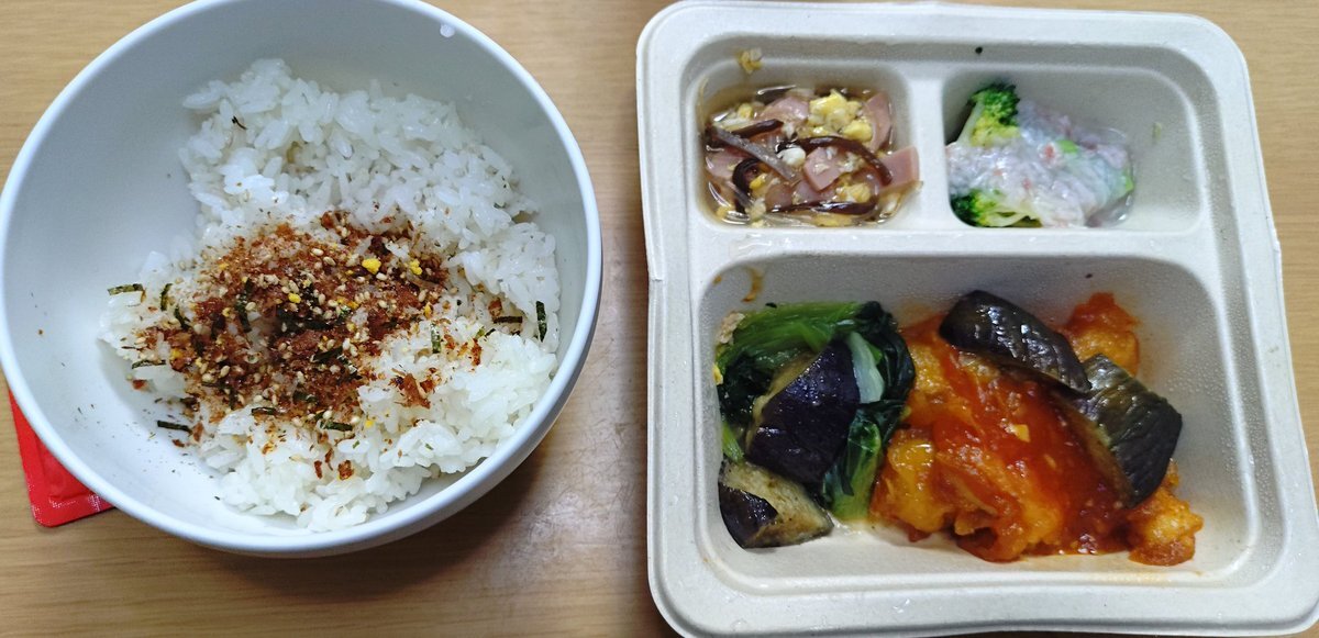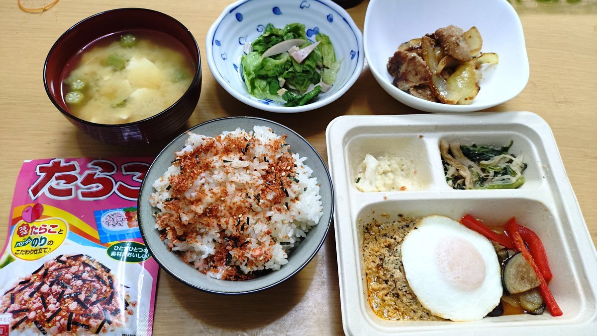 #今日の晩御飯 🍚ふりかけ(たらこ)ご飯 🥢豆腐と揚げと葱白味噌汁 🥒レタス胡瓜ハムの酢の物 🐷豚ヒレ肉の炒め #三ツ星ファーム 🍱とろーりタイ風コク旨ガパオ #晩御飯 #晩飯 #今日の晩飯 #家飯 #自宅飯 #おうちごはん #ばんごはん #晩ご飯 #晩ごはん #ばんめし #晩めし #おかん飯 #お袋飯 pic.x.com/sTasxqjI23