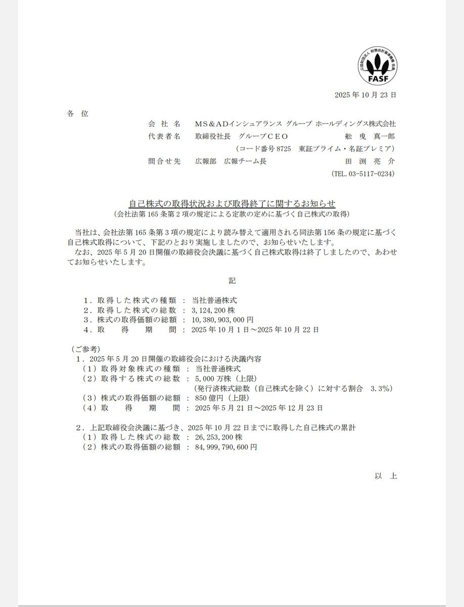 MS&AD(8725) 最近 #株クラ で購入報告を目にする銘柄 利回り4.8%の #高配当 で株価は75日・200日移動平均線を下にくぐっている状況。四半期決算は悪くない。 持株会社傘下の #三井住友海上 本社。仕事で中に入ったことあるが美術館かのような豪華さだったな。御茶ノ水行く用事があったのでパシャリ pic.x.com/Y7Dm0p9am6 x.com/pomemaru5109/s…