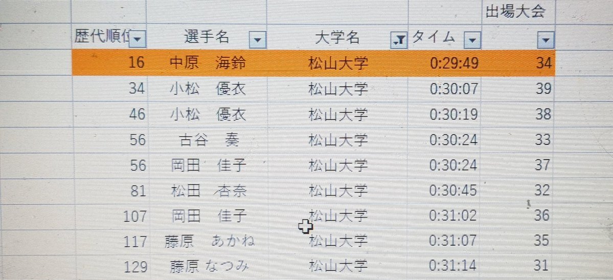 今はもうなくなってしまった松山大学。三井住友海上のアドバイザーでオリンピックランナー土佐礼子さんの母校でもあります。また、現在チームには3人松山大学卒の選手が所属。内、5区に出走した2人の記録。※色付きは大会優勝です。 #全日本大学女子駅伝2025 #三井住友海上 #松田杏奈 #小松優衣 pic.x.com/Sc0m5slHgI