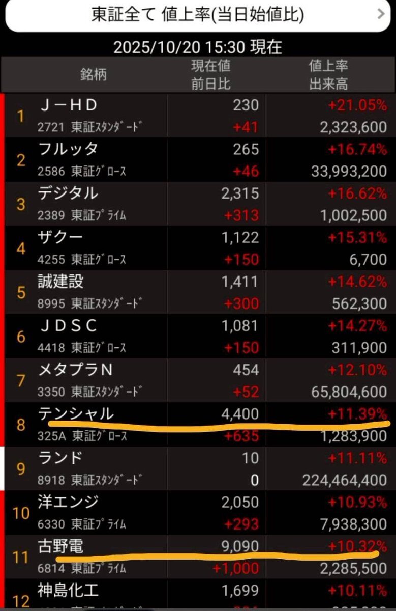 2025/10/23(木) 寄りから引けの上昇率 #東洋エンジニア+7.9% #三井ES+5.6% #キオクシア+5.1% #フジクラ+4.1% キオクシアを引け仕込み。 pic.x.com/3KLr68ciDE x.com/tetsukonoheya2…