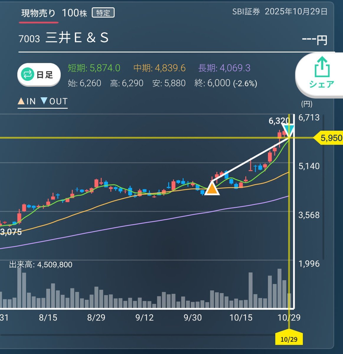〈7003〉三井E&Sにロングエントリー🫡 今日は押し目だと思ったのですが、はてさて🤔短期線を割るようでしたら、損切りです😂今日のエントリーはちょっとリスキーだったかな。。。夜間のサプライズは無しでお願いします🙏 #三井ES #スイングトレード pic.x.com/TWdkqLA9NW