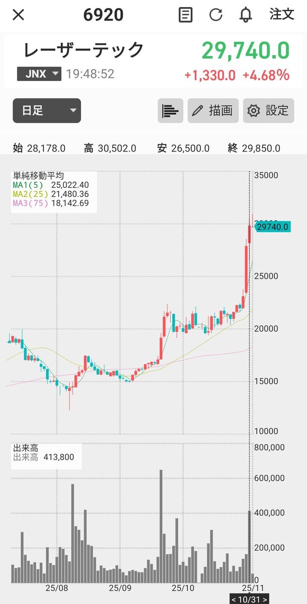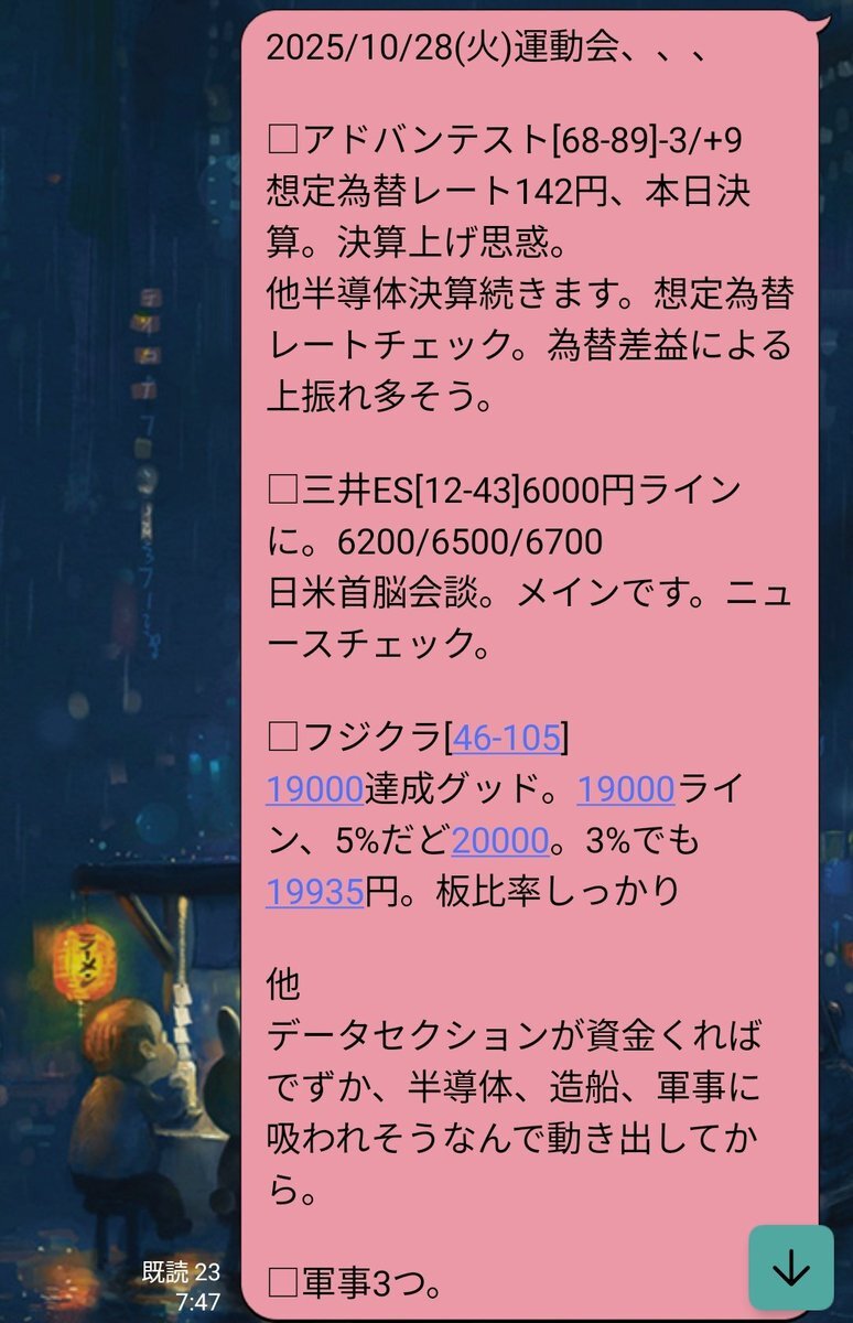 2025/10/31(金) 前夜に発熱、38.度程で39度にはならないが、三日目くらいの寒気、節々の痛みで久々ダウン。 8:45くらいから それでもPC前にきて、まぁ難しいやつは見もせず、 #三井ES+2.6% と #フジクラ+1.9% ほぼ持ち越しだけで上がってるからなんもしなくていいのだけど。 pic.x.com/WtEyXBS6dM