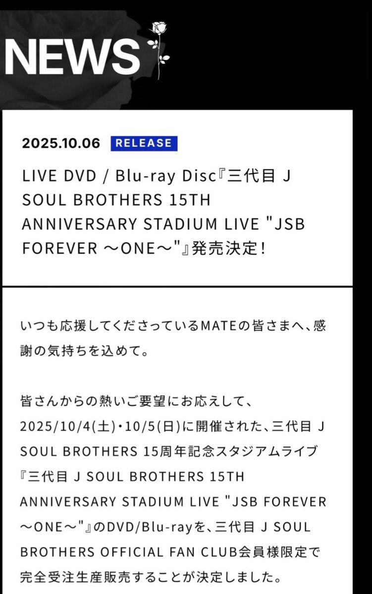 手元に届くの待ち遠しいなぁ🏟️ 💙臣ちゃんはじめメンバーみんなかっこよかった❤️🔥🌈🌹最高‼︎ #三代目JSOULBROTHERS #JSBFOREVERONE x.com/jsb3_official/…