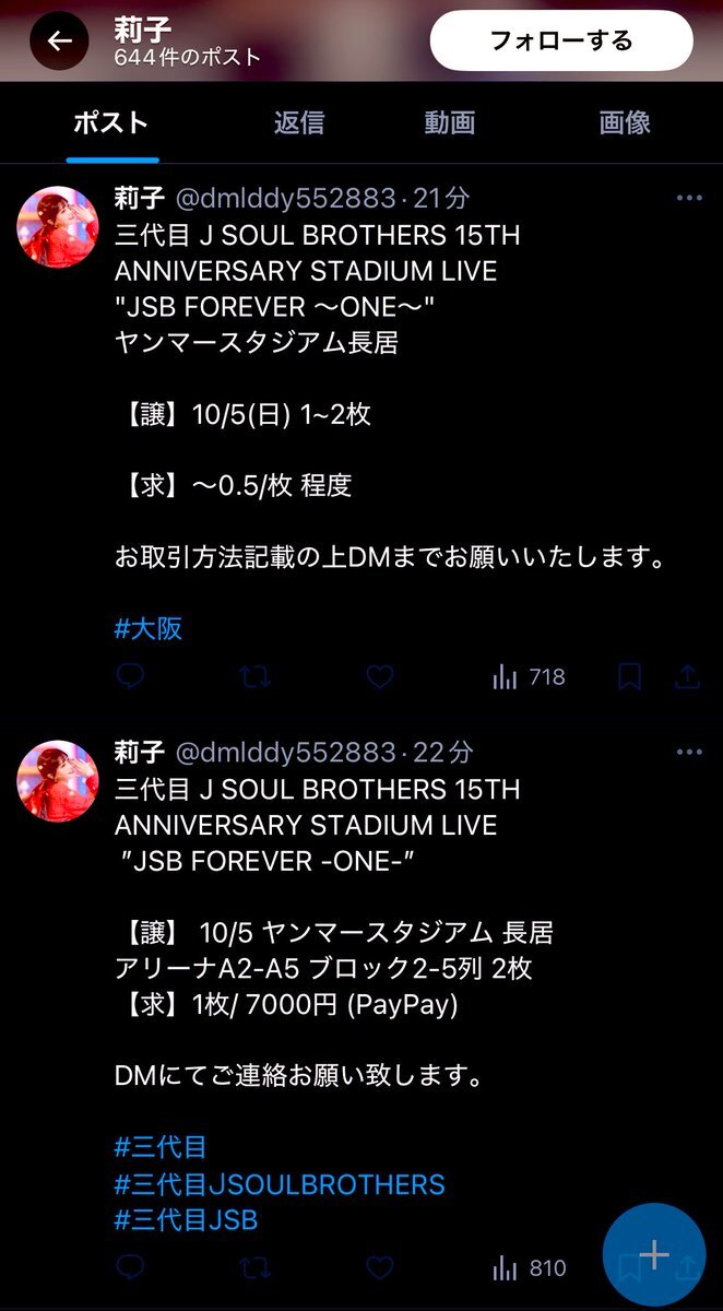 この方にPAYPAY送金後にブロックされましたチケットもいただけませんでした 被害が増えないようお取り引きは控えることをお勧めします #三代目 #三代目スタジアム #三代目JSOULBROTHERS #三代目JSOULBROTHERSfromEXILETRIBE #三代目famさんと繋がりたい #LDHfamさんと繋がりたい #登坂広臣 pic.x.com/V28V9Q6US3