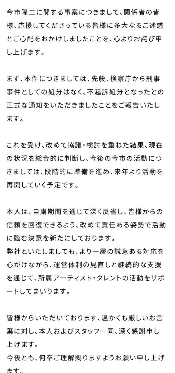 隆二ー😭😭 来年より活動再開していく予定ですの文見て泣いた😭😭 本当によかった😭😭 来年は三代目7人でLIVEするのを楽しみにしています😭😭 #三代目 #三代目JSB #三代目JSOULBROTHERS #三代目JSOULBROTHERSfromEXILETRIBE #三代目famさんと繋がりたい #LDHfamさんと繋がりたい #今市隆二 pic.x.com/s5tpxypnww