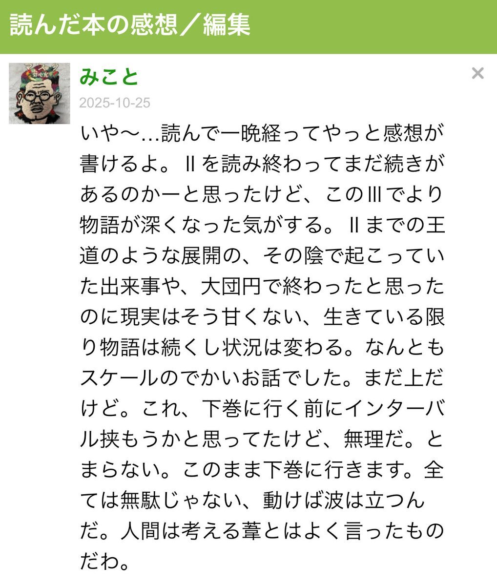 Ⅰ、Ⅱで400年先の話でスケールでかいなーと思ったけど、それどころじゃなかったわ…スケールデカすぎてかえって一瞬だったような気がするわ…。これがSFか…。 #三体 pic.x.com/OpQA7iEBYX
