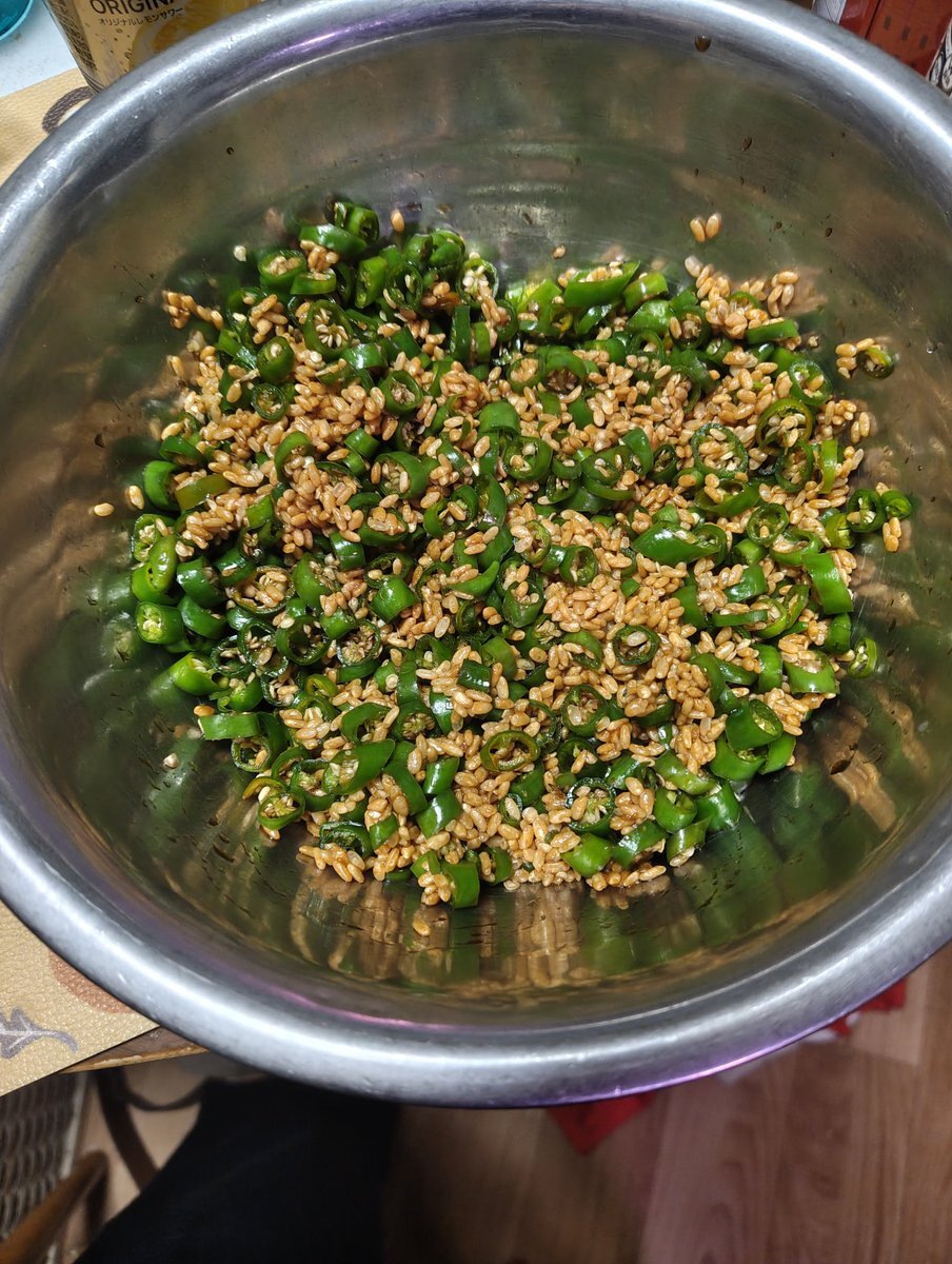 今年も無事に #三升漬 つくりましたよ🐒昨日たまたま無人販売所で韓国南蛮🫑が100円だったから🐵🎶 去年のが無くなる寸前でギリギリ間に合った🙈💦 豆腐にも納豆にも刺身にも…なんならご飯にそのまま乗せてもイケるのになかなか全国に広まらないの🙉ナゼ? pic.x.com/puyj24YpHy
