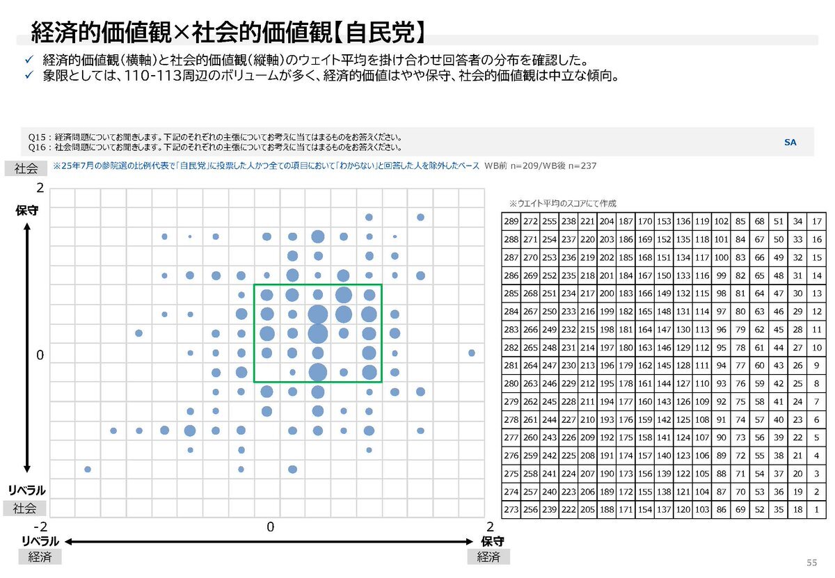 では自民党に残った人たちの特徴は?外交安保はリアリズム保守。経済的には成長より・財政規律よりの人たちです。社会的には中道保守が多いものの、比較的広がりがあります。日本人価値観調査(JVT2025)より。yamaneko.co.jp/news/%e6%97%a5…