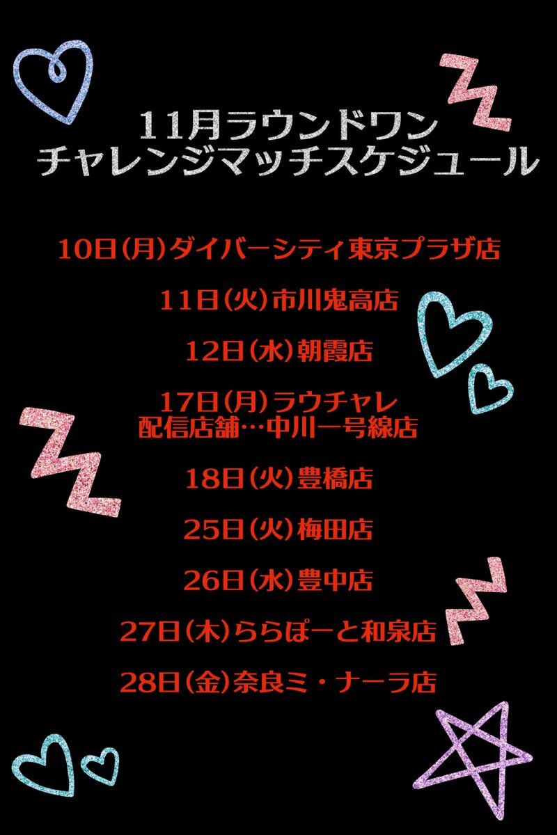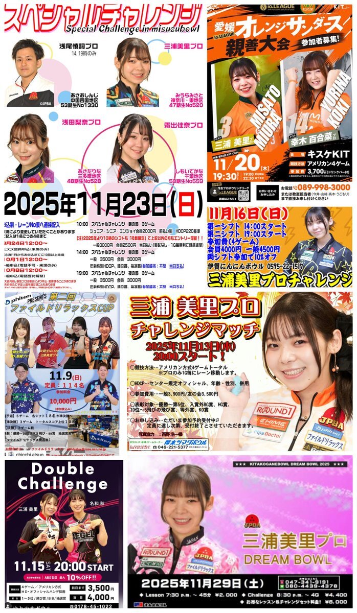 11月のスケジュール 久々に見やすい画像を作りました! お申し込みは各センター様に お願いします☎️ ↓こちらのサイトでも スケジュール確認できます! 520misato.com/schedule/ #三浦美里 #チャレンジマッチ #スケジュール #ラウンドワン #ラウチャレ pic.x.com/I536ZBH5z8