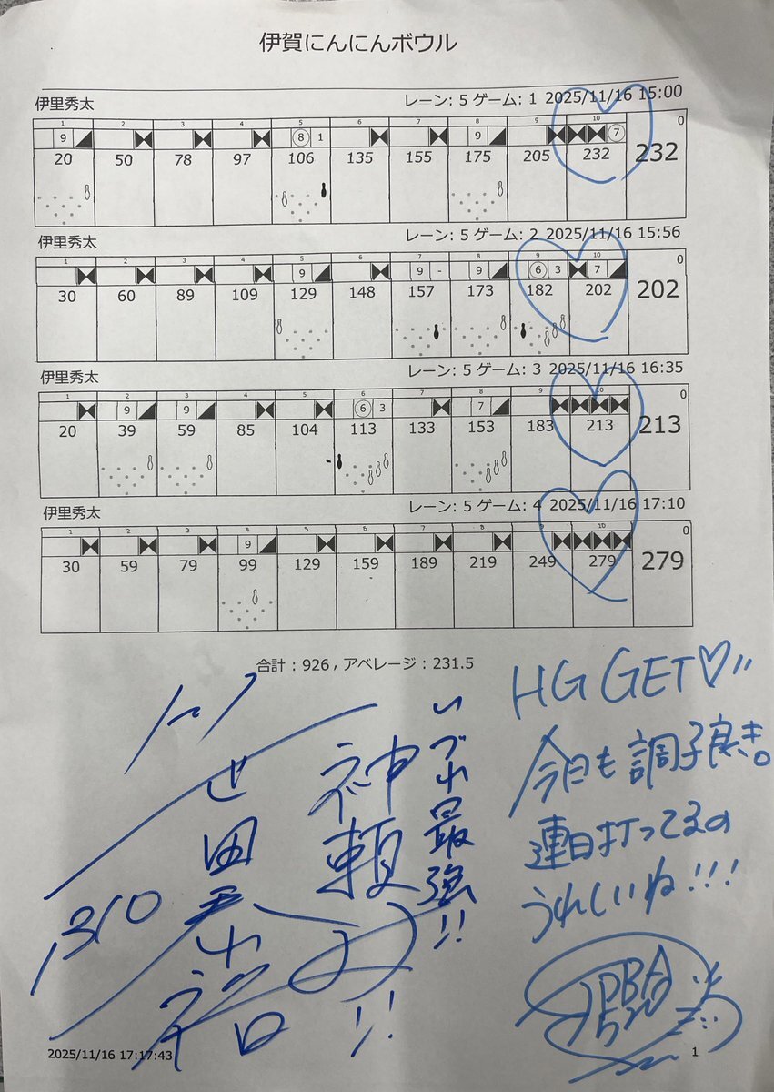 ☆ 伊賀にんにんボウル(昼シフト)★ \\ 三浦美里プロチャレ🎳 // 最後に持ってこれたシフトでした😮💨3ゲーム目までは耐えてちょいプラして悩みながらのゲームでした🤔最終ゲームはだいぶハマったのと投げ感がとてもよくビックゲームで900up出来ました✨️ #三浦美里 プロ #笹田泰裕 プロ pic.x.com/IxIEPyUck1