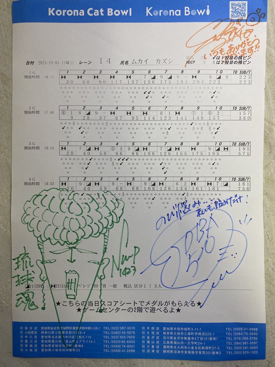 10/5(日)安里P・三浦Pチャレンジに参加 (コロナキャットボウル安城)16時の部 1G目フィフススタートで223するも 2G目オープンフレーム5個で157 3G目、4G目はそこそこストライクでるも ダブル止まりで200upできず756のマイナスで終了😭 #安里秀策 #三浦美里 pic.x.com/SYPxe5i93S