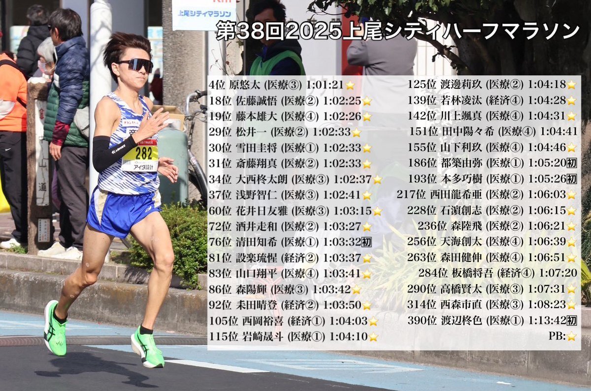 【駅伝競走部】 先日行われた第38回2025上尾シティハーフマラソンの結果になります。 詳しい結果や他の写真はInstagramの投稿からご覧ください✅ 写真: 学内2番手、62分台で自己ベスト更新を果たした佐藤(医療②) #帝京大学 #走れさとせー #世界一諦めの悪いチーム #上尾ハーフ pic.x.com/WMKT1THjbU