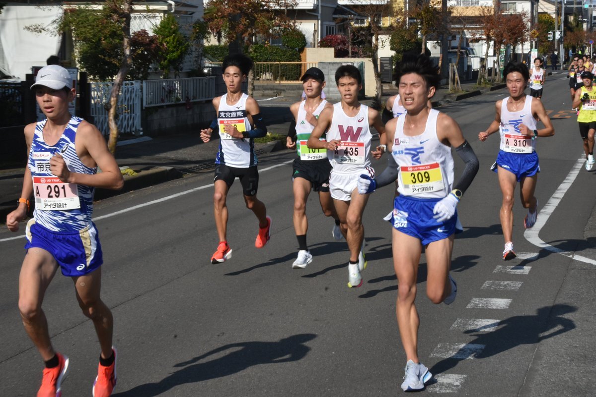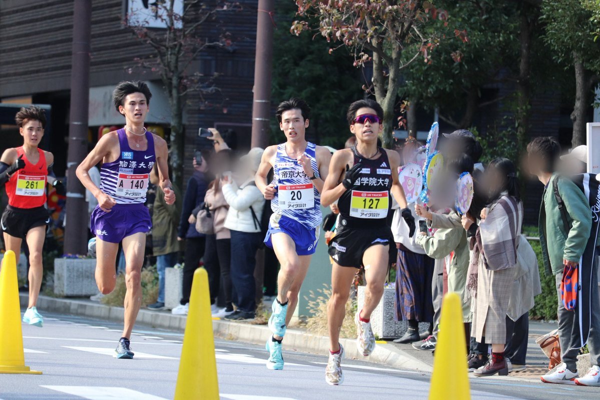 【#上尾ハーフ】2025/11/16 ▶62分30秒絶対切りたいマン ゴールまで残り100m。絶対に62:30切りたい大集団が駆け込んできた。 左から順に 長友(中学大)62:25 三代田(中学大)62:22 藤本(帝京大)62:23 児玉(國學院大)62:25 浅野(國學院大)62:22 鈴木(東海大)62:25 pic.x.com/ndktSgm4tj x.com/ekiden_navi/st…