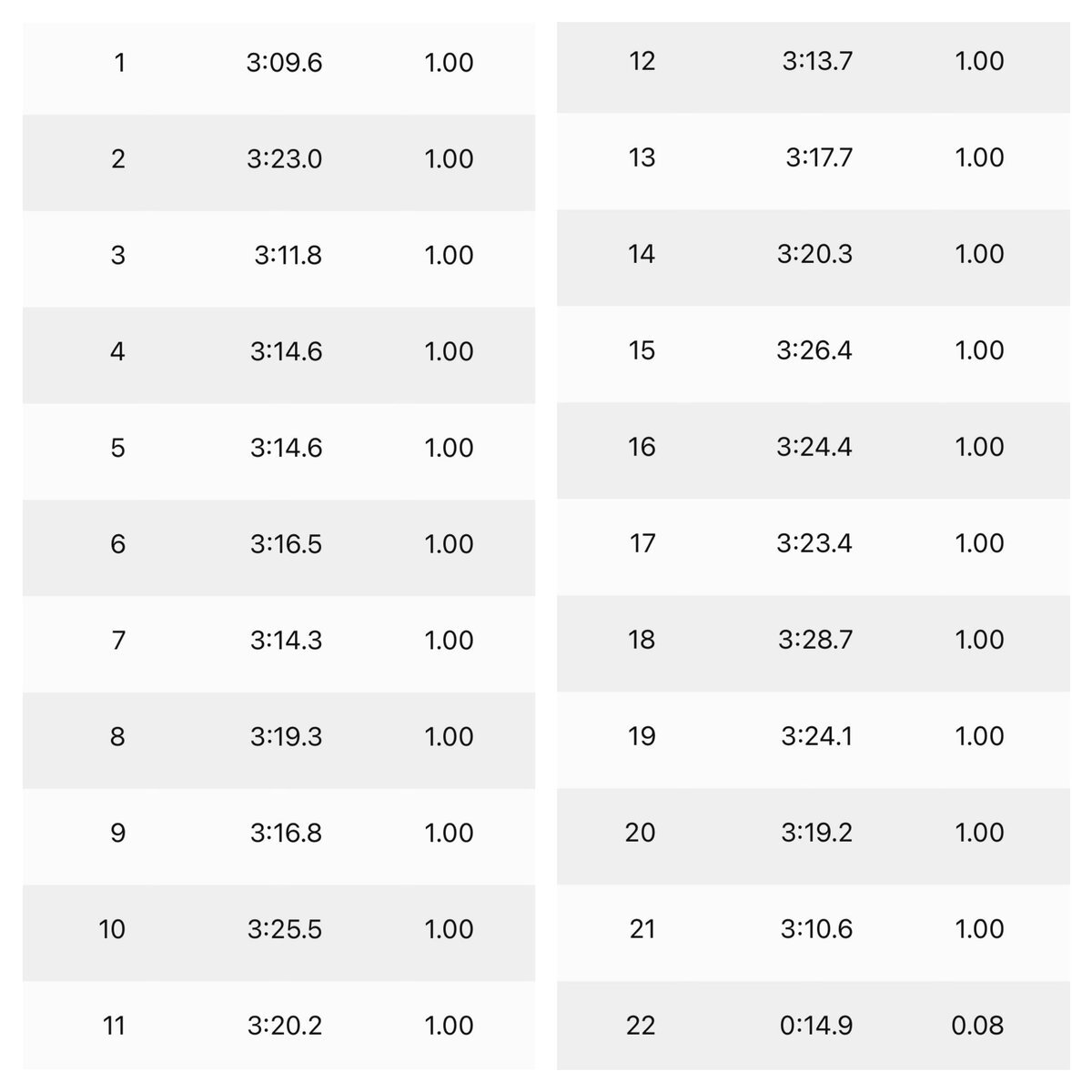 11/17 #上尾ハーフ 74'30 17'21-'24-'34-18'09-4'02 Alphafly3 コンディション不良のため仲間のサポートに徹し、18kmあたりからjogとなってしまavgは3'31と及第点といったところか。 防府は目標の下方修正が現実的。後ろ向きにならず先を見据え、まずはjogからしっかり取り組んでいきたい。