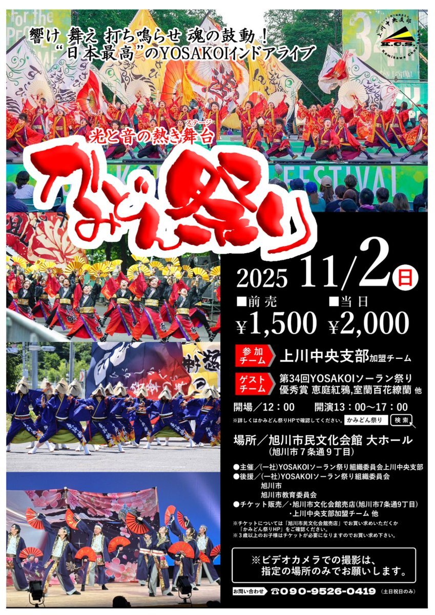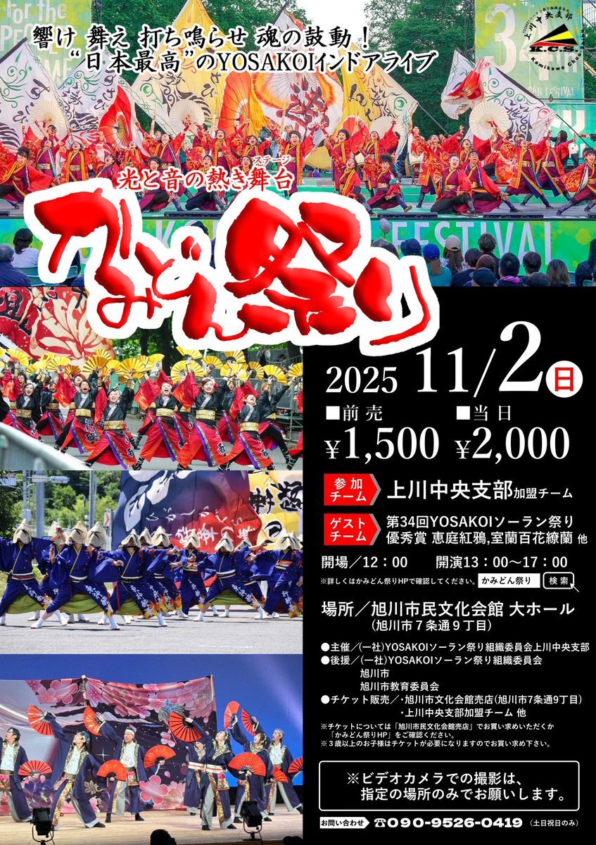【演舞告知】 11/2は #かみどん祭り にて演舞いたします! 寒さの厳しくなってきた旭川をたくさんのゲストチームの皆さまと盛り上げますよ! 遨オリジナルグッズも販売予定🤩 チケットはまだまだ販売中!前売りで購入するとお得です🉐✨ #遨~すさび~ #遨 #北辰乱舞 #YOSAKOIソーラン祭り #よさこい