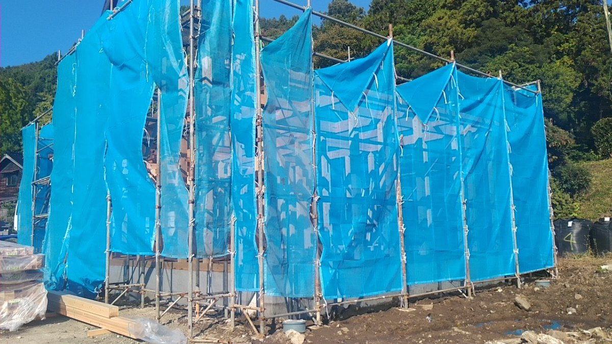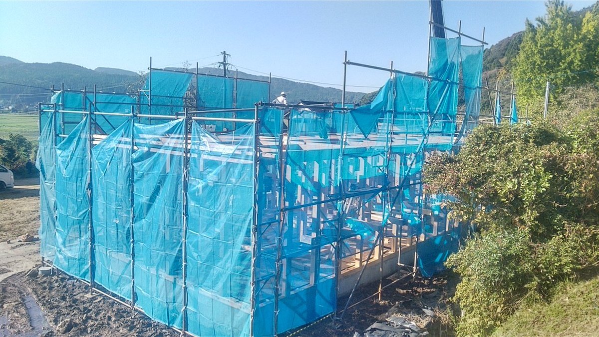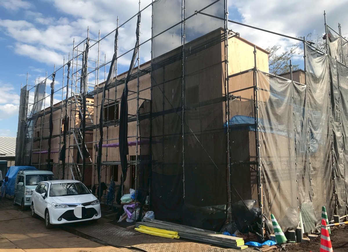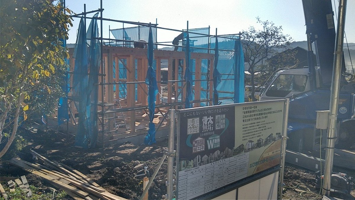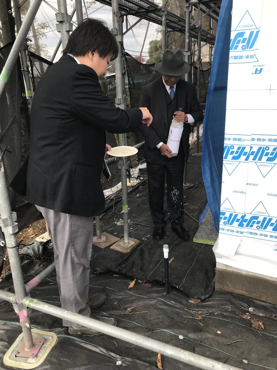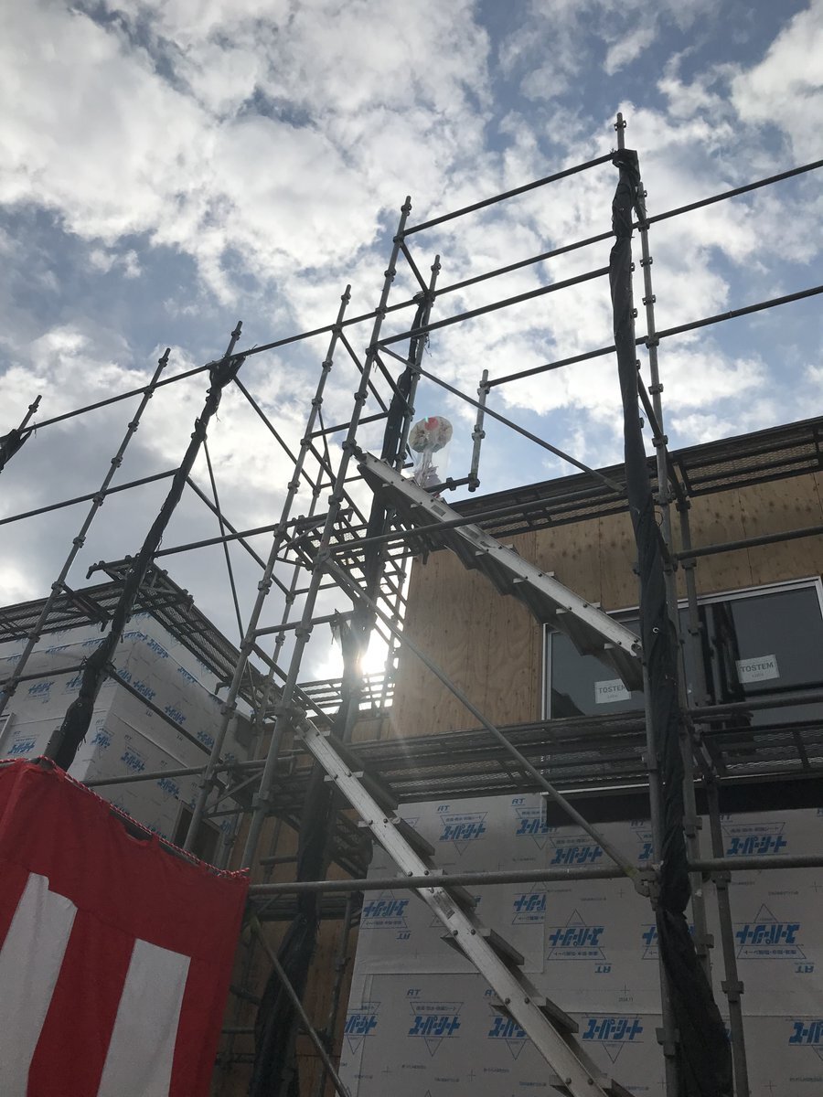 上棟始まりました。 皆さん、本日はありがとうございます! どうぞこまめに休憩をとって安全第一で作業なさってください。 どうぞよろしくお願いします。m(_ _)m #上棟式 pic.x.com/wffctOmahv