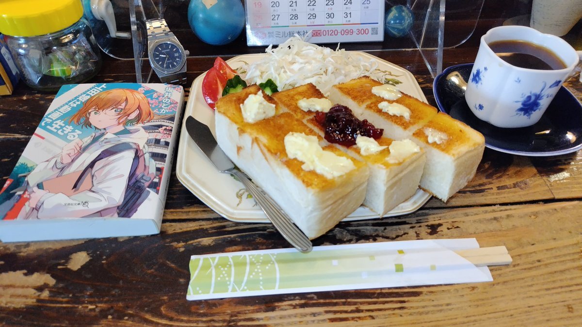 『上田娘は動画で生きる』(坂井のどか 著、文芸社) bungeisha.co.jp/bookinfo/detai… 読了❗️ 上田に住んでいる者にとって、場面を頭の中に描きやすくたまらない内容だった 9:30~14:30 勤務 #食べて応援 #飲んで応援 #亜羅琲珈ブレンド M.M.C. サイフォン 450円 #トースト 厚切り サラダ付き 450円▶