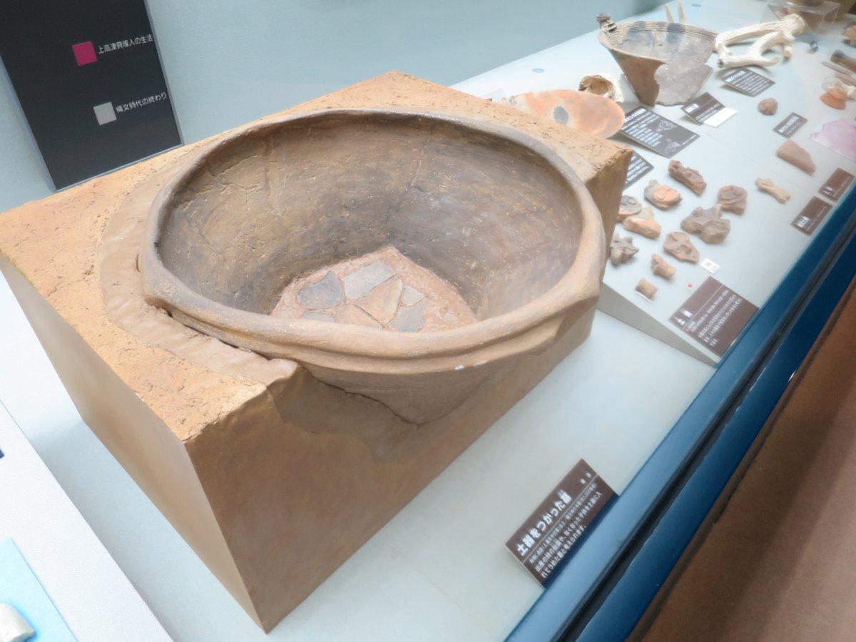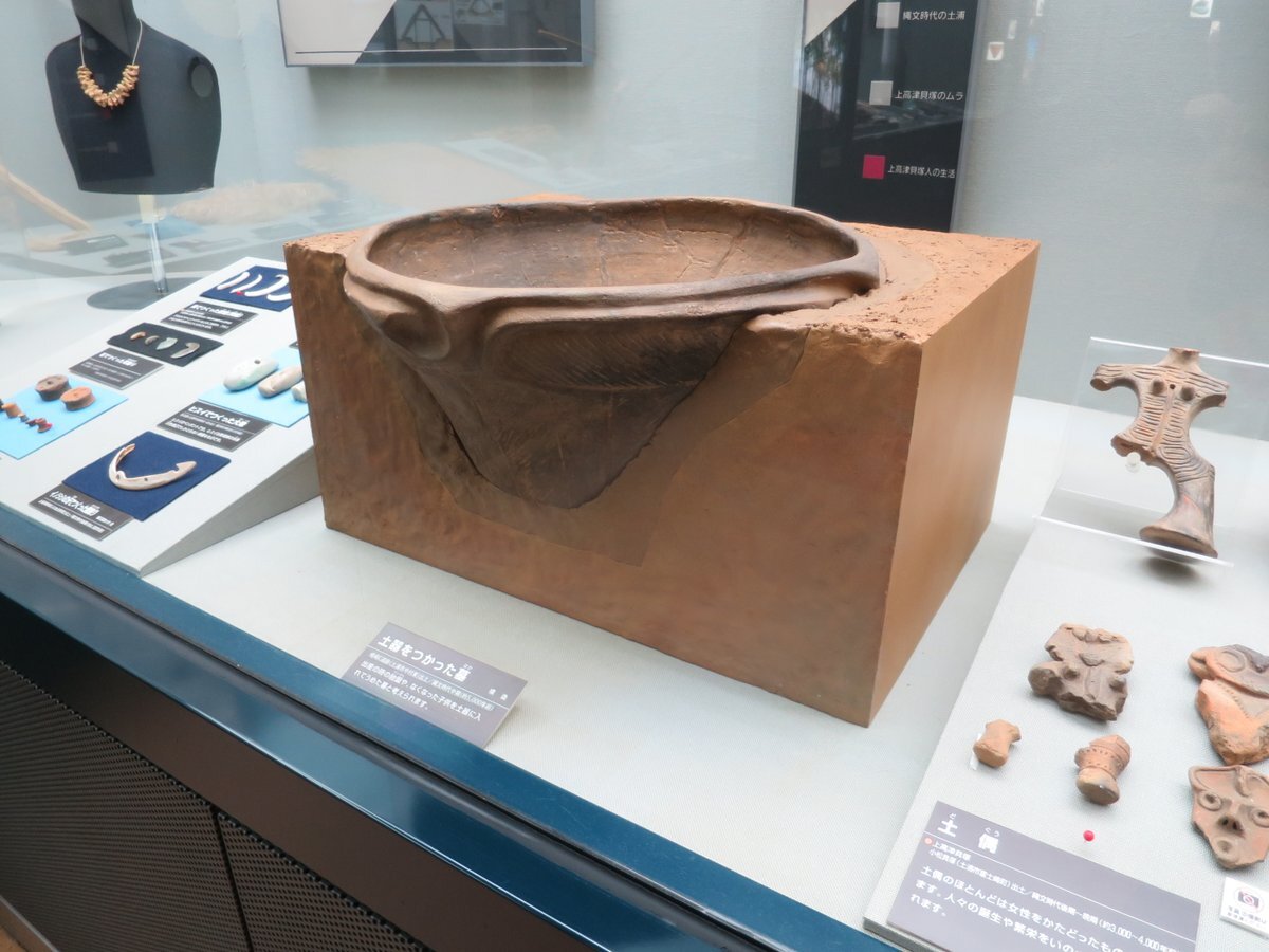 #上高津貝塚ふるさと歴史の広場 #職場体験 1】 #イチ推し展示資料#土器を使った墓 です。土浦市内の峰崎C遺跡から出土した縄文時代中期のものです。出産の時の胎盤や亡くなった子供を土器にうめた墓と考えられます。#上高津貝塚 #土浦 pic.x.com/UH4C2U8xWD