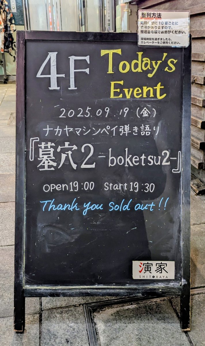 今日は、ストレイテナーのナカヤマシンペイさんの 弾き語りライブで、下北沢の演家(シトラヤ)へ。 今回も、楽しみだなぁ~🎸 #ナカヤマシンペイ #弾き語り #墓穴2_boketsu2_ #下北沢 #下北沢演家 x.com/shitoraya_info…
