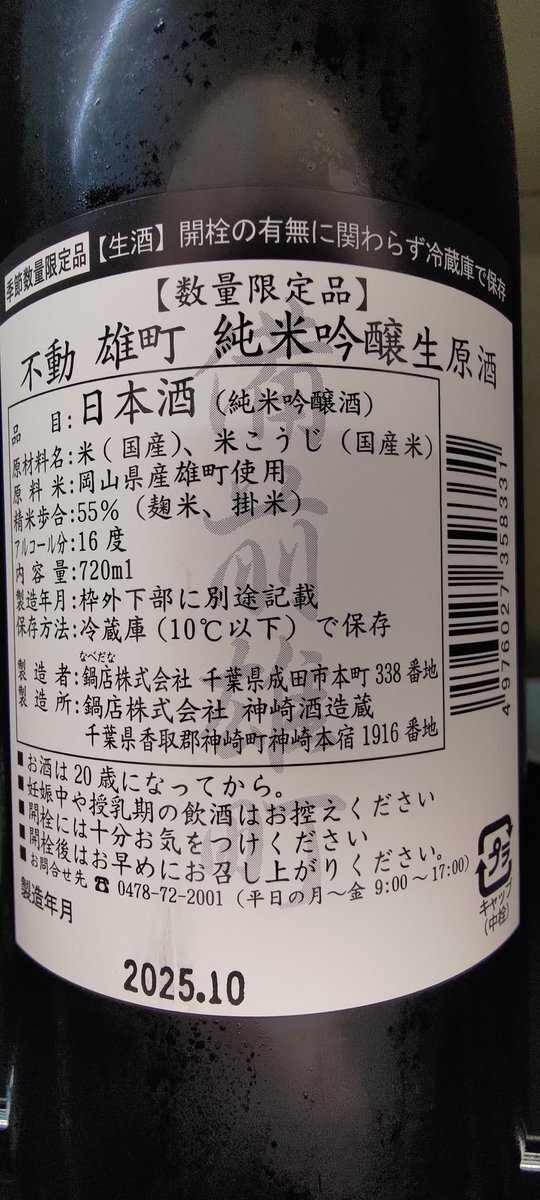 本日の口開け、不動純米吟醸無濾過生原酒おりがらみ備前雄町。香り巨峰、サトウキビ軽くタイム。含むと旨味、渋味を伴って落ち着いた甘味が広がり、若干の酸味を利かせながら苦味へと移行、最後はコクを残して果てます。備前雄町の奥深い旨味が見事に活かされた生酒です。 #日本酒 #不動 #おりがらみ pic.x.com/zpY2YaWGyd