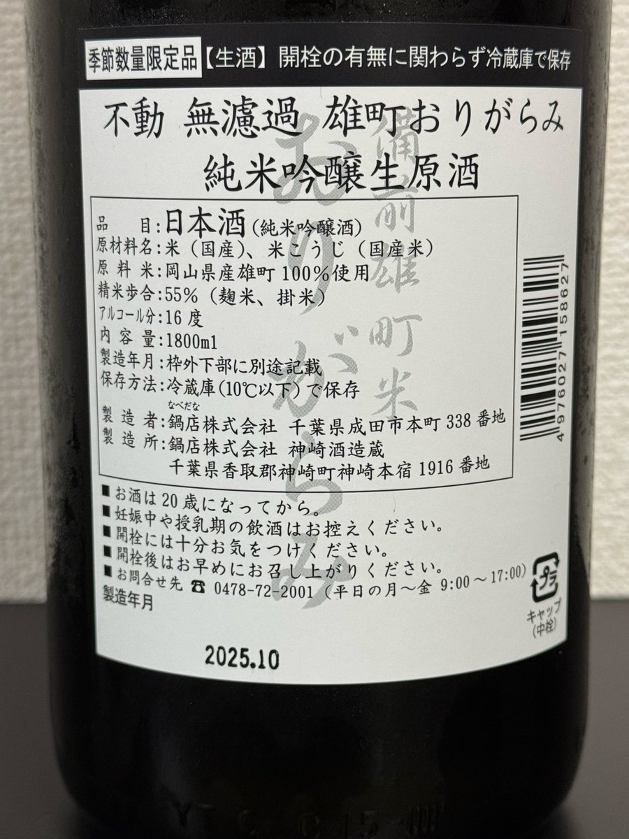 TLに「新しい銘柄にチャレンジするか、いつもの酒を買うか悩ましい」的な投稿がありましたが、今夜は「いつものお気に入り」です。雄町は山田錦ほど華やかではないですが、落ち着いた気品があって見逃せないですよね😊 #不動 #鍋店 pic.x.com/CT2W17xHi4