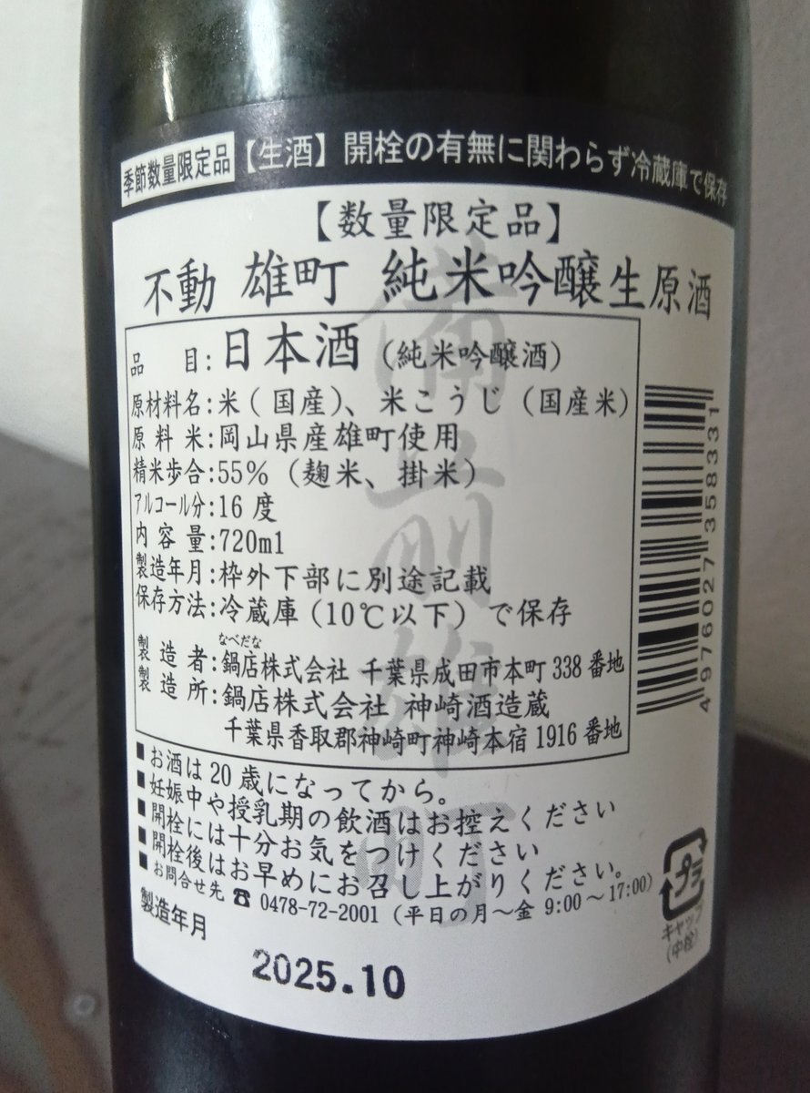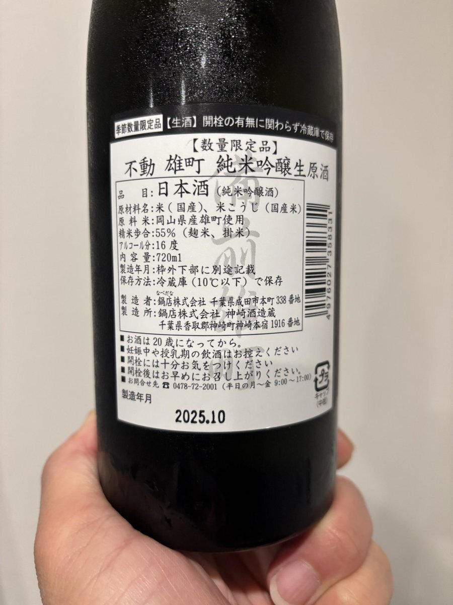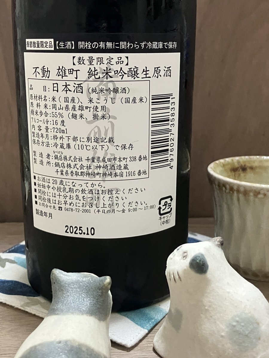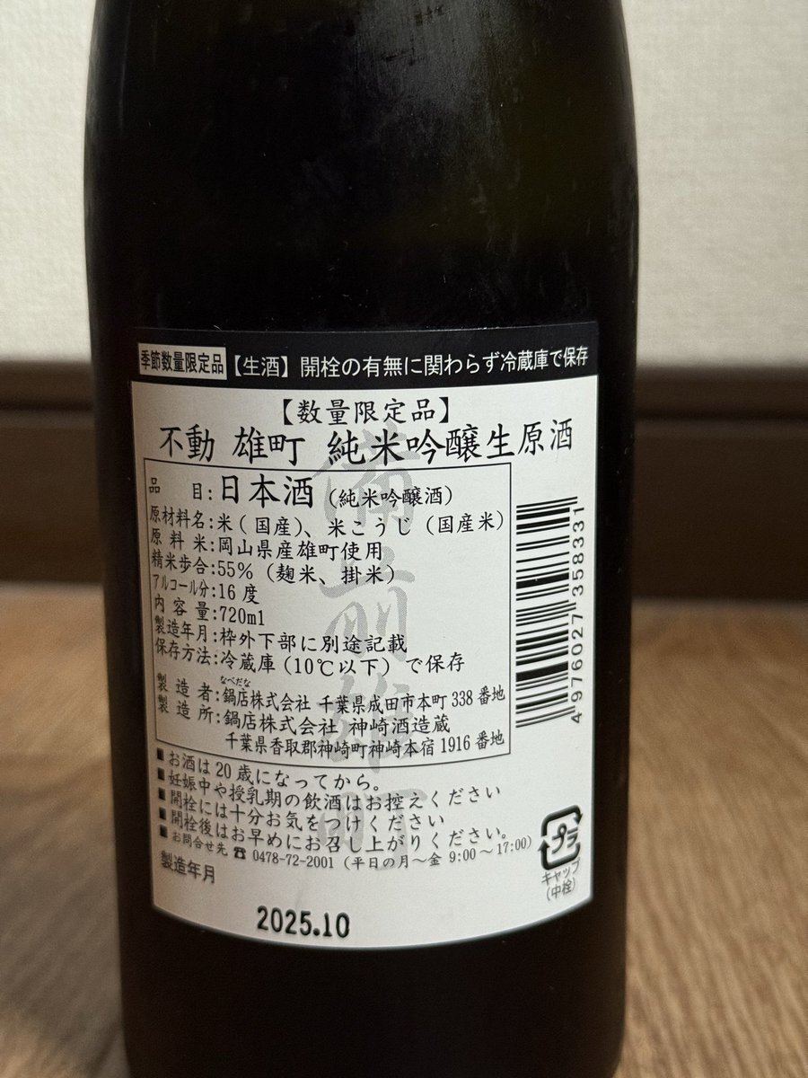 日本酒『不動』。スペック非公開なんだって〜。調べてみたら千葉のお酒。めちゃくちゃ美味い!山廃じゃないんだろうけど系統としては天狗舞方面ぽさある。これ好き😋🍶 #日本酒 #不動 pic.x.com/TjkhS1TqYm