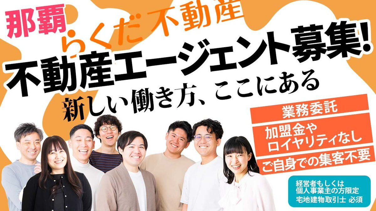 \沖縄で活躍する #不動産エージェント ・募集‼️/ 「またやりたい」と思える、不動産取引を。 「楽しかった」「頼んでよかった」 と、言ってもらえるように—— チーム全員で、ご依頼者さまのベストを考え抜いています。 【#沖縄県那覇市/業務委託】不動産エージェント募集! ➡️詳細はリプ欄から❣️🐫 pic.x.com/aZ03uphxCx
