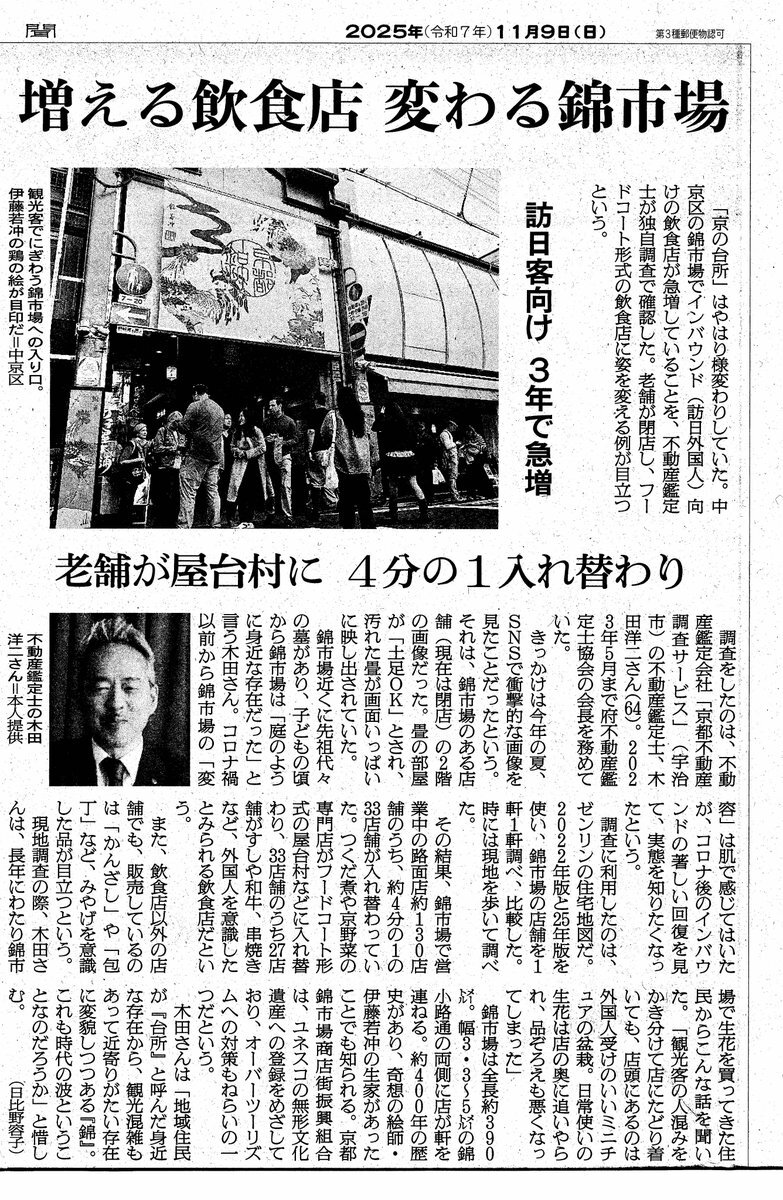 思い出したように行なった不動産調査が、今朝(9日)の朝日新聞(京都版)に、『変る錦(にしき)市場』と題して掲載されました! #不動産鑑定士 #価格の殻を破れ #中央大学 #白門鑑定士会 #京都 #錦市場 #オーバーツーリズム #薊の審判 pic.x.com/QJvB5P82yT